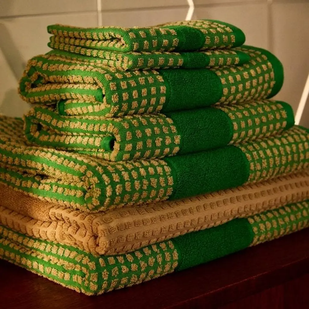 The exquisitely soft Check bathroom series, with its beautiful, chequered look consists of towels and facecloths in lovely colours and various sizes, in a simple, muted design. As with all other JUNA creations, the Check products are of course manufactured responsibly, and the 100% organic woven cotton not only ensure an incredibly soft quality, but also a high level of durability. Now JUNA is launching the stylish towels and facecloths in two new color combinations: blue/sand and green/sand. All the bathroom textiles are made of 100% organic cotton, which is both OEKO-TEX® labelled and GOTS certified.