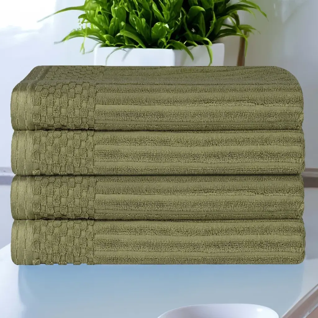 Add incredibly soft texture and color to your bathroom accessories with the Cotton Ribbed Checkered Border Medium Weight 4 Piece Bath Towel Set. Crafted from naturally strong and fluffy cotton, these towels have a highly-absorbent design. Each towel is very plush to help you dry quickly as soon as you step out of the shower or bath. This stylish bath towel set will tie together Modern, Casual, or Contemporary bathroom decor styles. Featuring a classic ribbed pattern with a checkered border, this set will seamlessly tie together the look of your space.