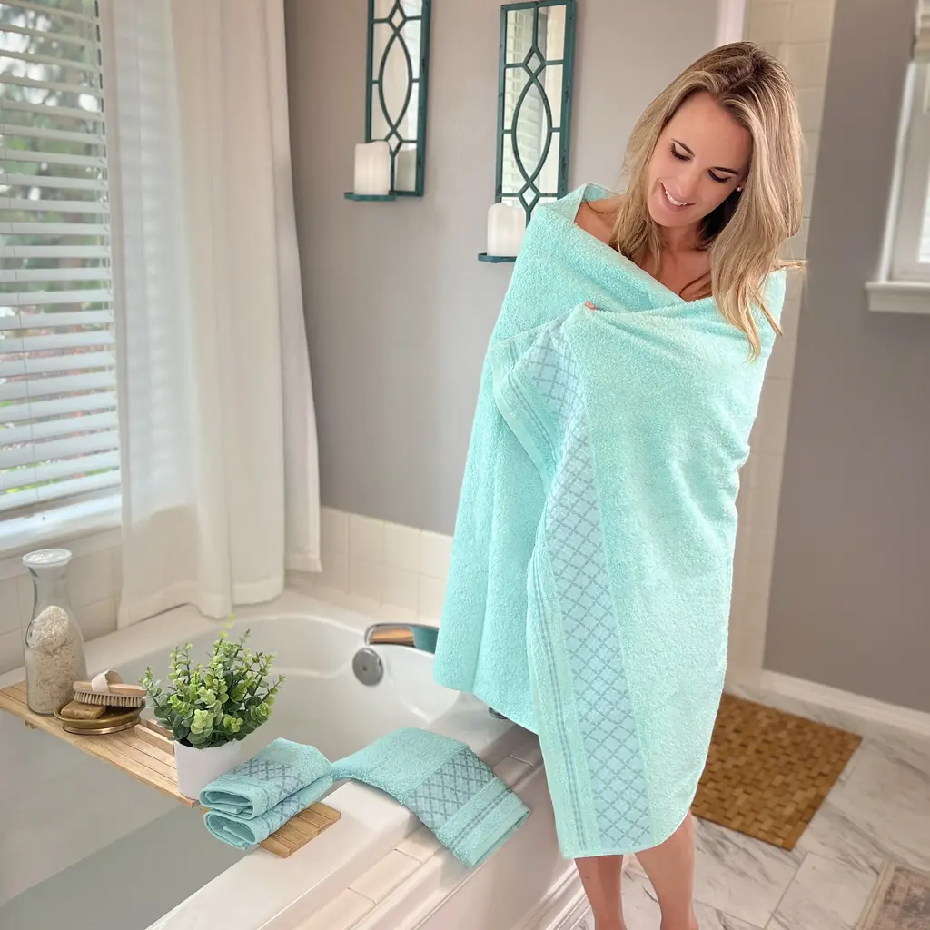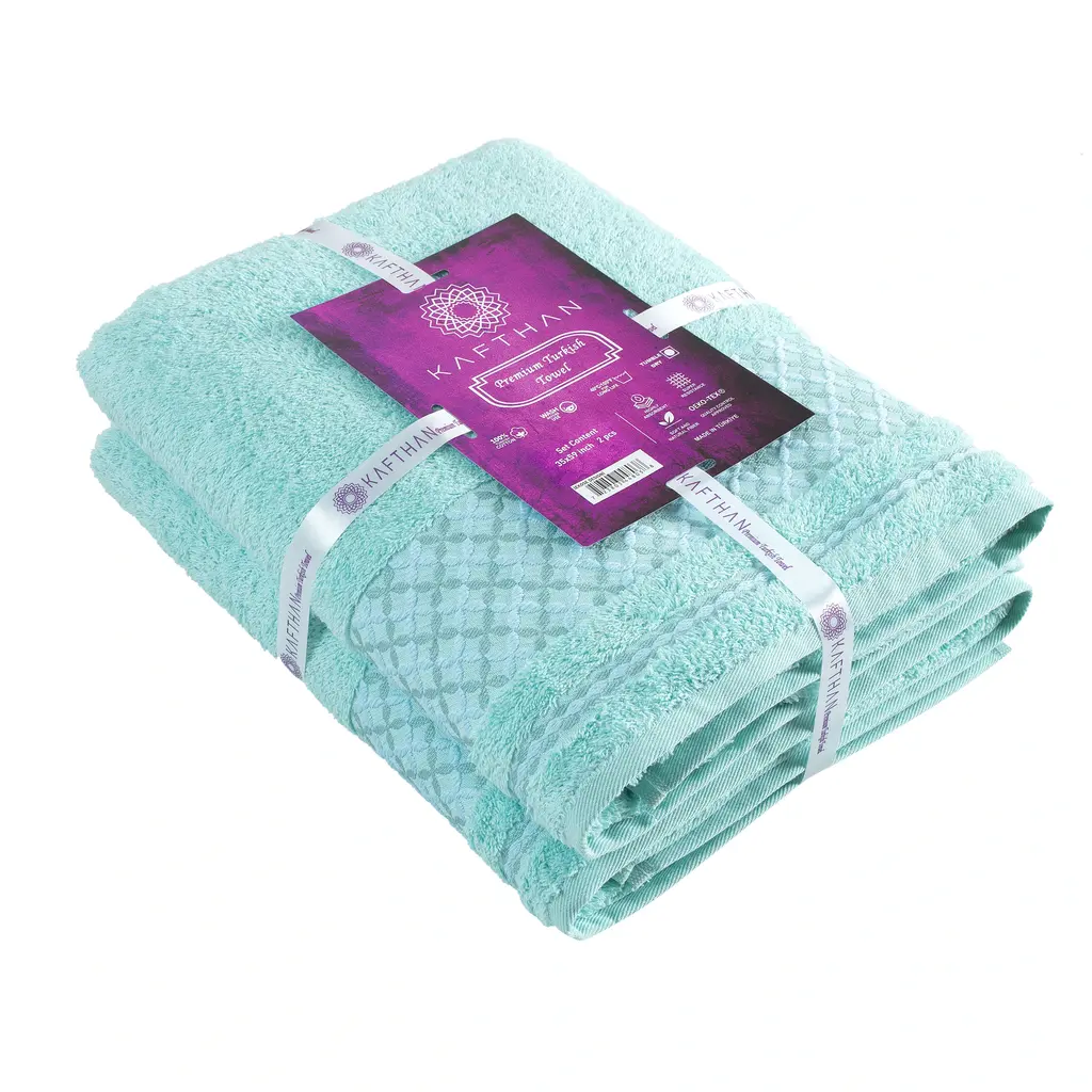 Graphically gorgeous, KAFTHAN's bath towel set feature sophisticated Byzantium and Ottoman motifs in various colors. They are made in Turkey with premium 100% Turkish cotton for luxurious softness and exceptional absorbency.. The set is composed of 2 XL bath towels / sheets (35"x59"). KAFTHAN's 600 GSM towels are manufactured in an OEKO-TEX Standard 100 factory, an independent certification system that ensures textiles meet high safety and environmental standard. Care: Machine washable and tumble dry.Features: