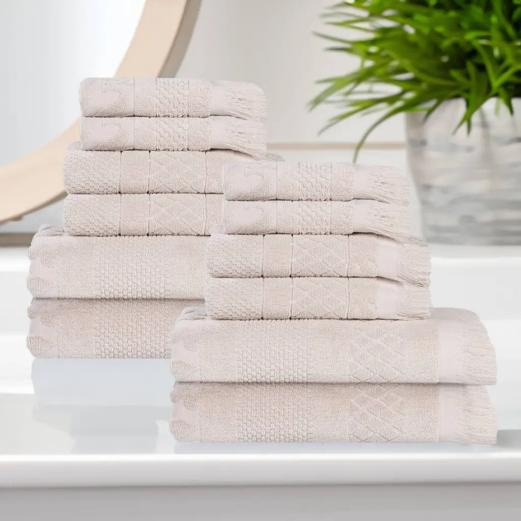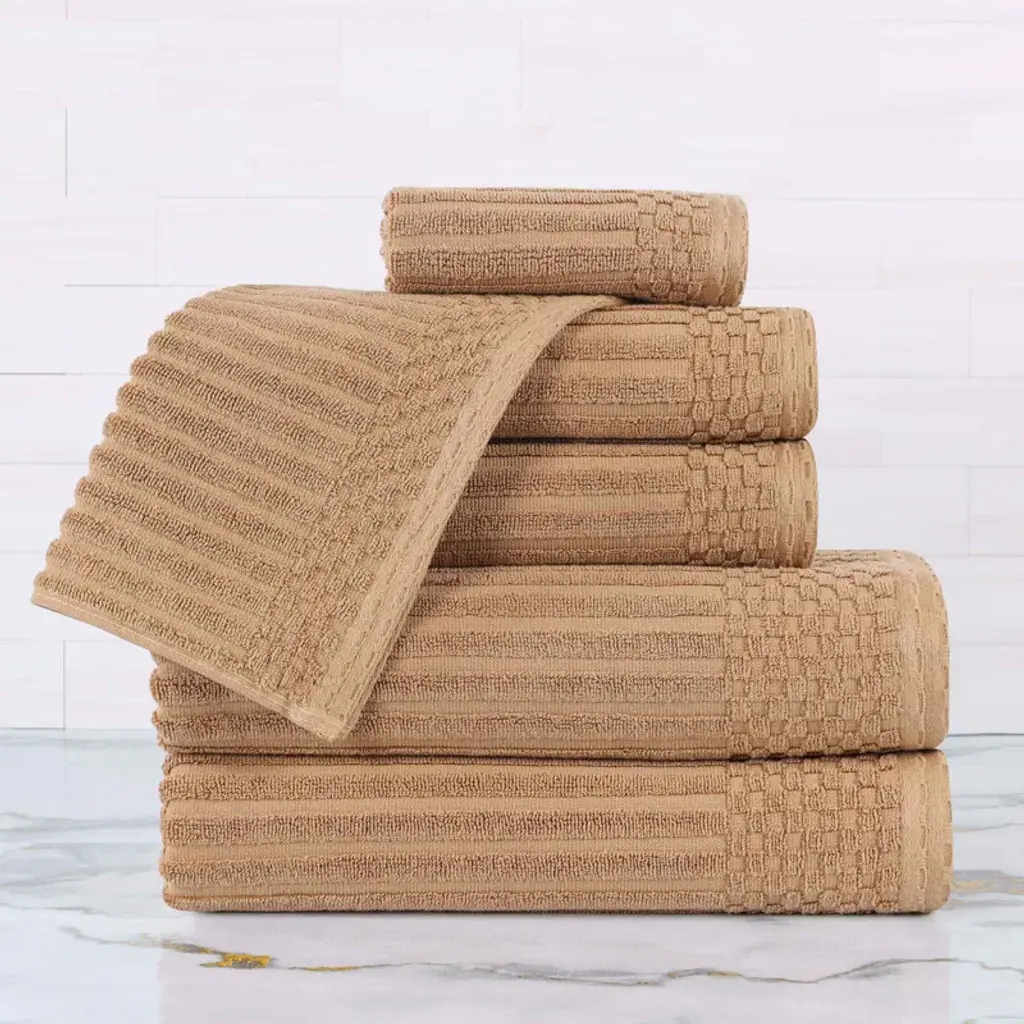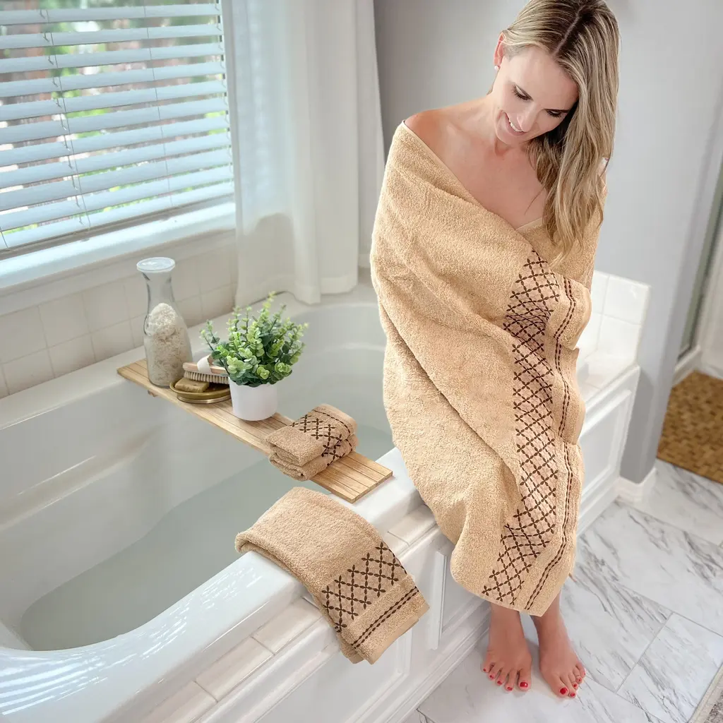 Kafthan Textile Plaid Turkish Cotton Bath Towels (Set Of 4) - 59"l X 35"w X 0.5"h - Beige
