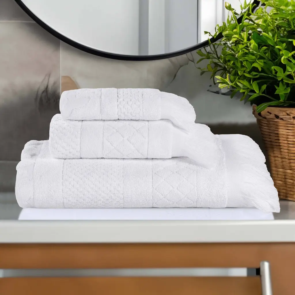 Kafthan Textile Plaid Turkish Cotton Bath Towels (Set Of 4) - 59"l X 35"w X 0.5"h - White