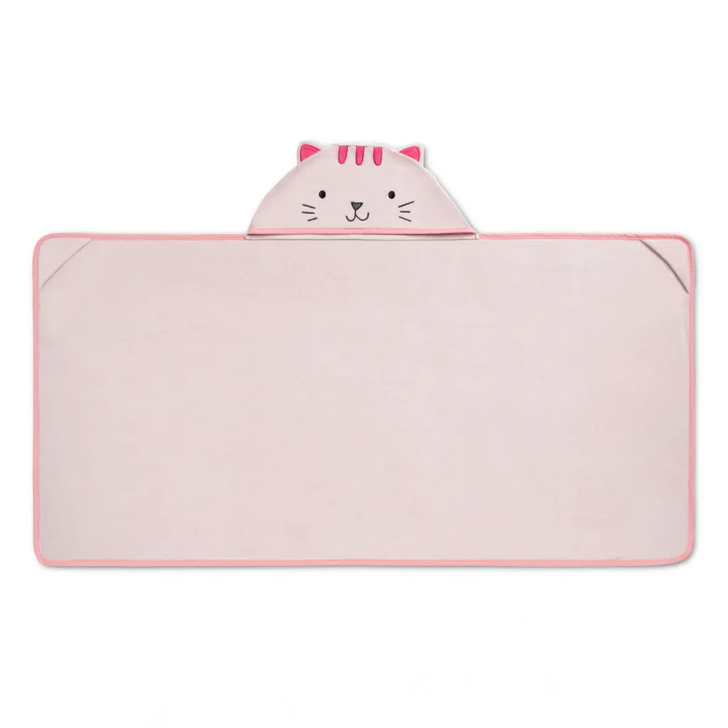 Kids Hooded Bath Towel With Pockets - Super Soft And Absorbent- Pink Cat - Pink