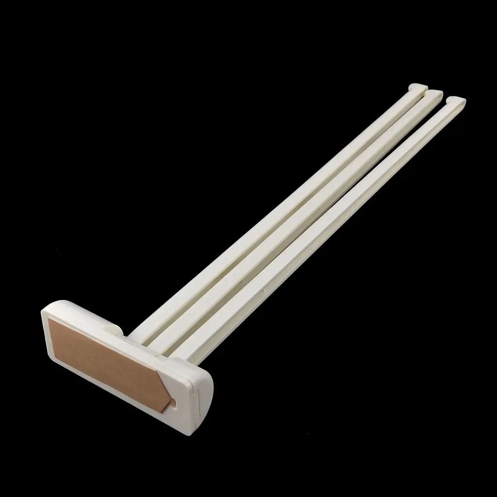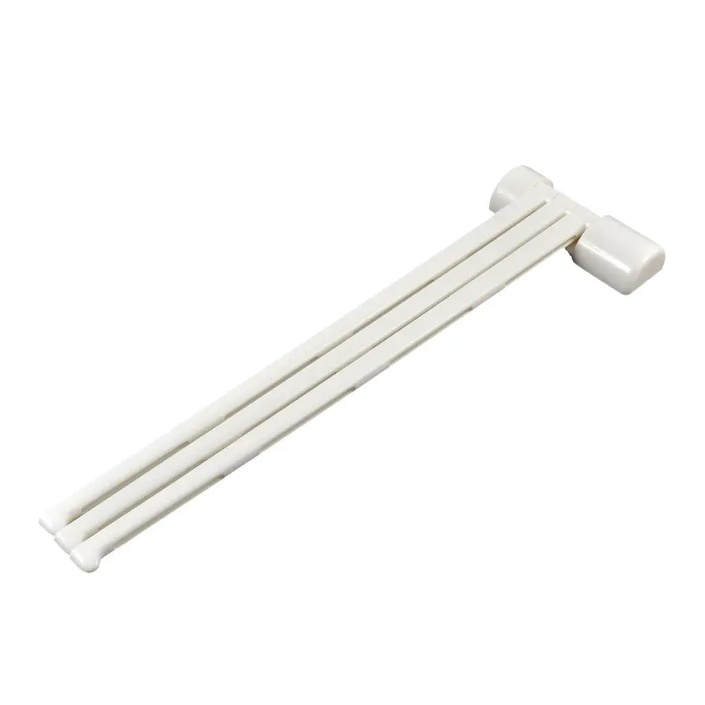Color: White; Product Name: Towel Hanger.Size: 33 x 9.5 x 2cm/13" x 3.7" x 0.8"(L*W*T).It is widely use in kitchen and bathroom etc.Package Content: 1 x Towel Hanger.Material: Plastic.Three swinging arms hold your favorite towels in a tidy fashion that also keeps them separate for easy, faster drying.You can use this swing arm towel holder in the kitchen, bathroom or pantry for easy every day use or travelling.
