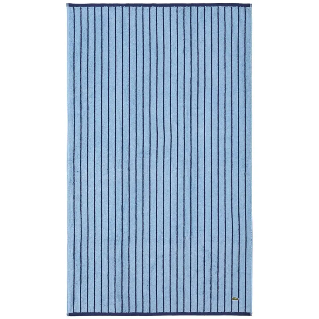Lacoste Centre Mark Cotton Jacquard Stripe Bath Towel - Blue