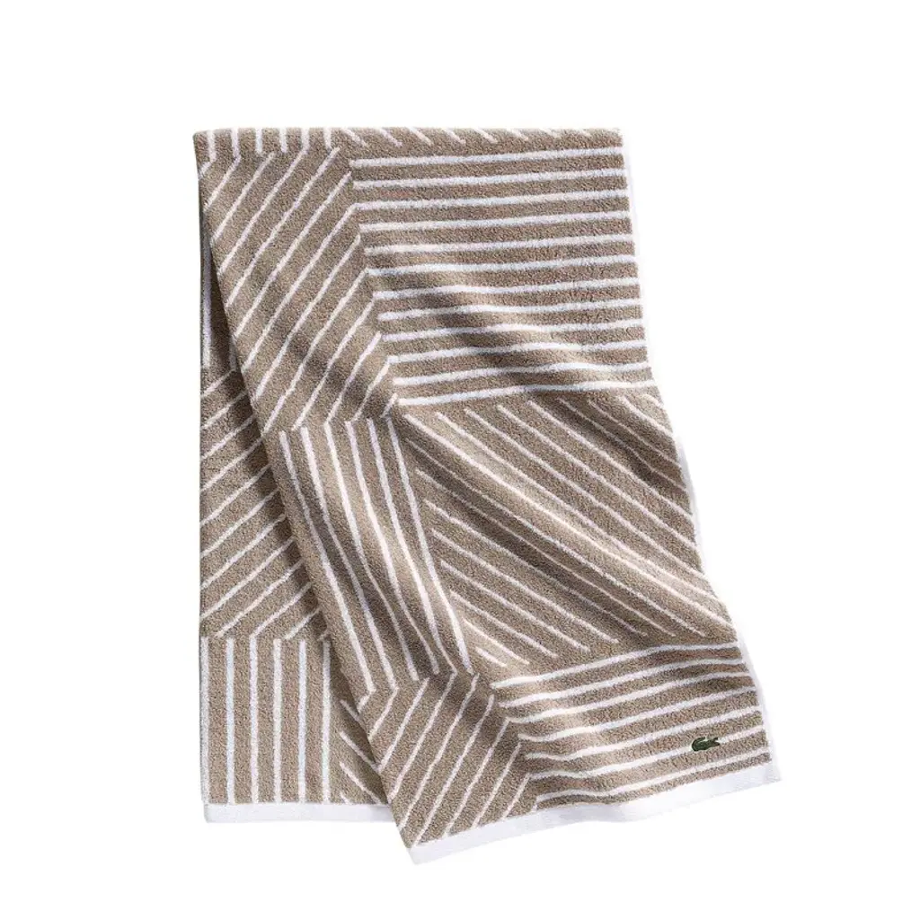 Add fresh color and modern graphic appeal to your bathroom with these cotton Guethary towels from Lacoste. The playful pattern of these soft and absorbent yarn-dyed towels reverses to an inverted color scheme on each side, adding effortless style to the bathroom. This highly absorbent and low linting towel is made of 100% cotton. Features the classic iconic croc logo on every towel. This designer towel is the perfect size to dry off after bathing, and is easy to maintain as it is machine washable in cold water with like colors on gentle cycle. Features: