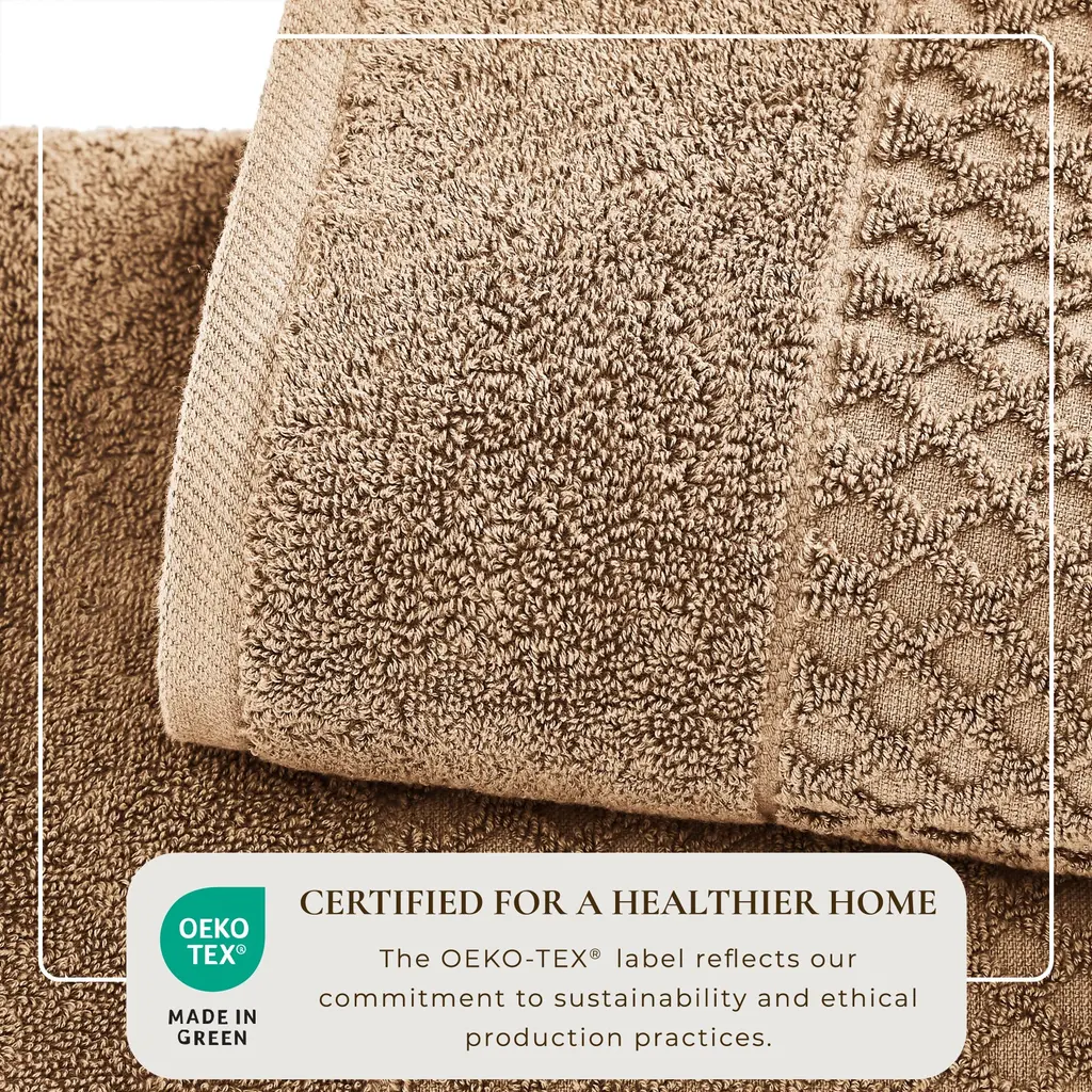 Linery & Co. Cotton Diamond Waffle Texture Bath Towels. - 6 Piece Set - Mocha
