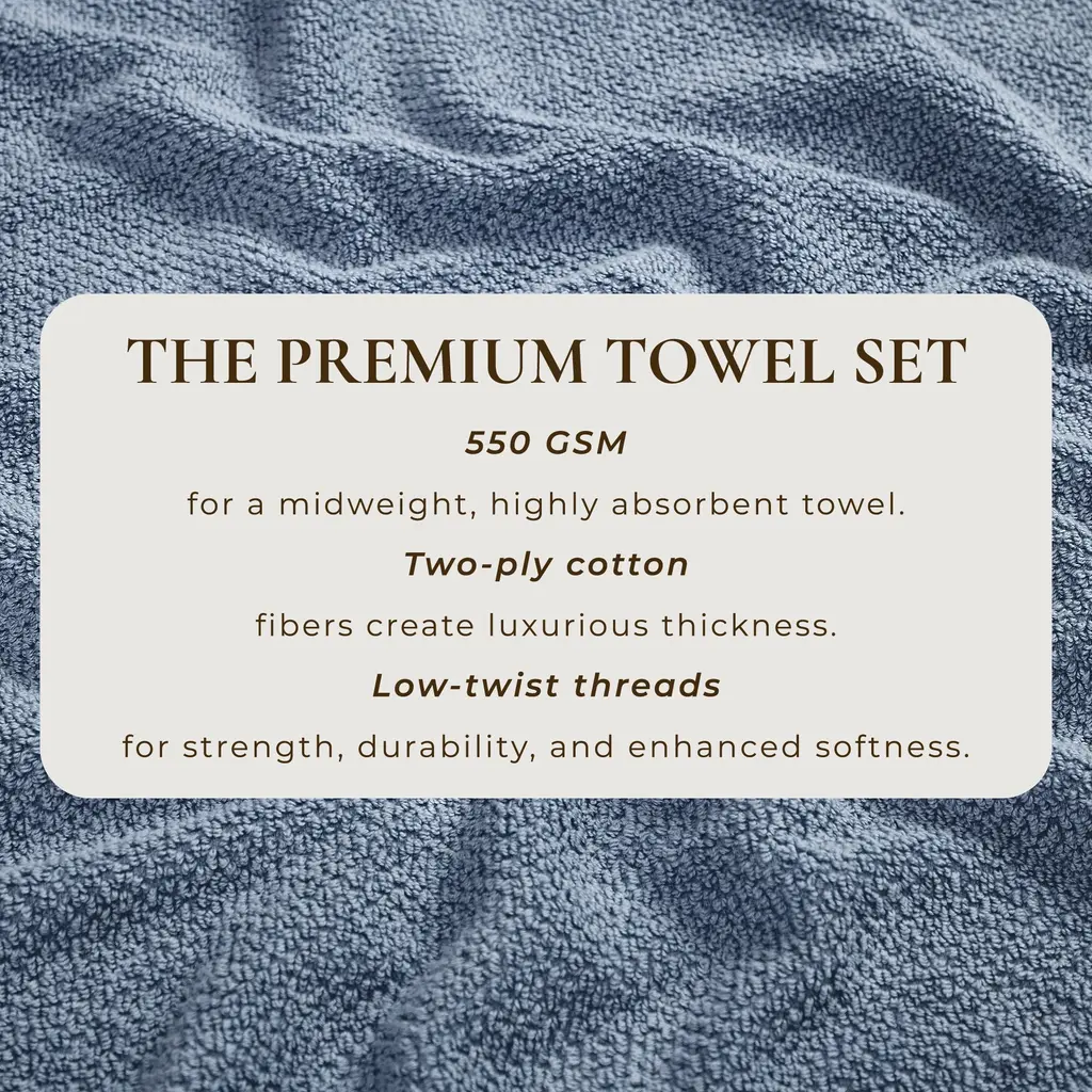 Linery & Co. Luxury Cotton Textured Bath Towel. - 6 Piece Set - Chambray Blue