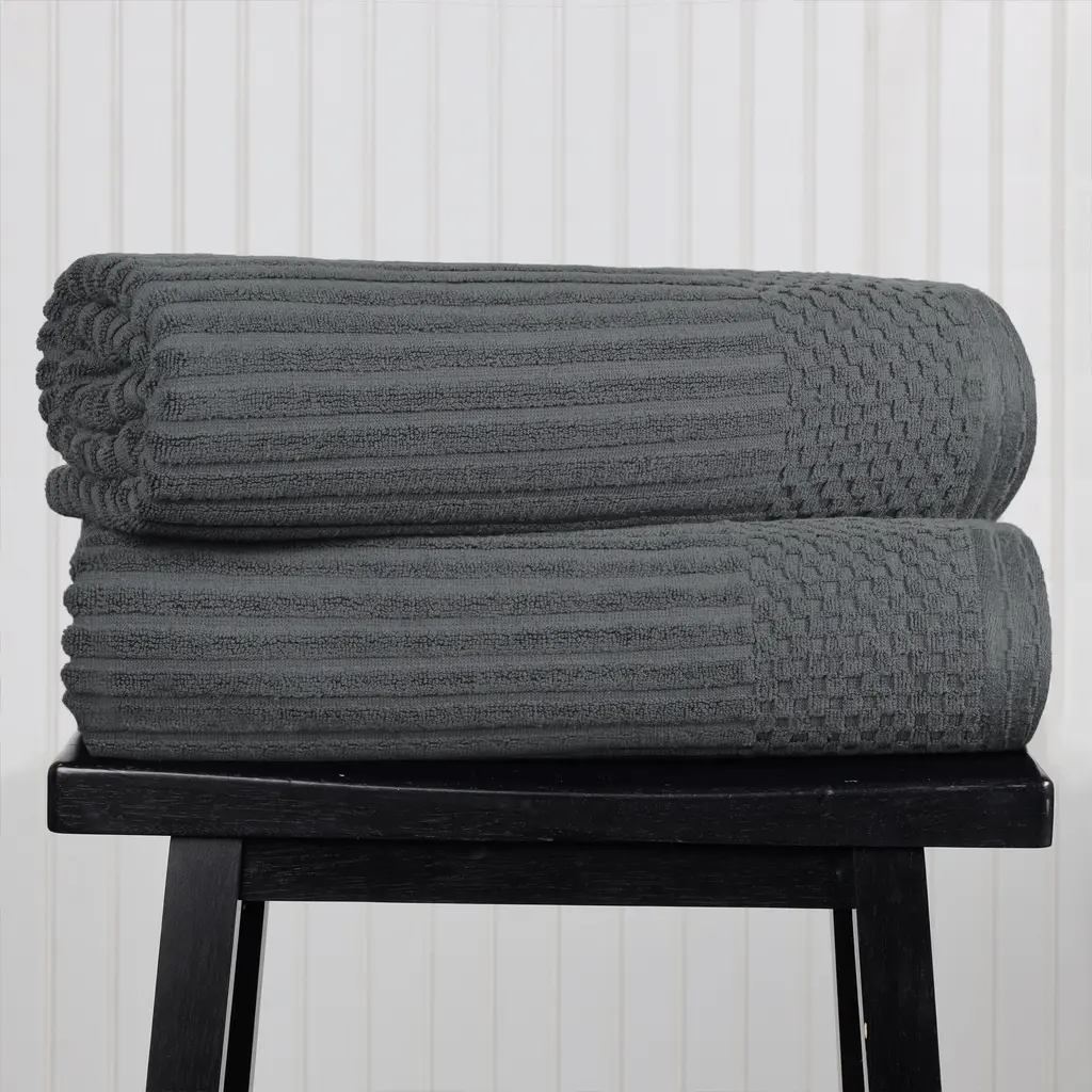 Luxury Stitch Bath Towel (27 X 50) (Light Grey) - Set Of 2 - Brown