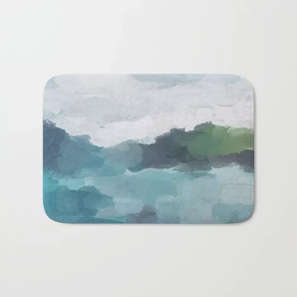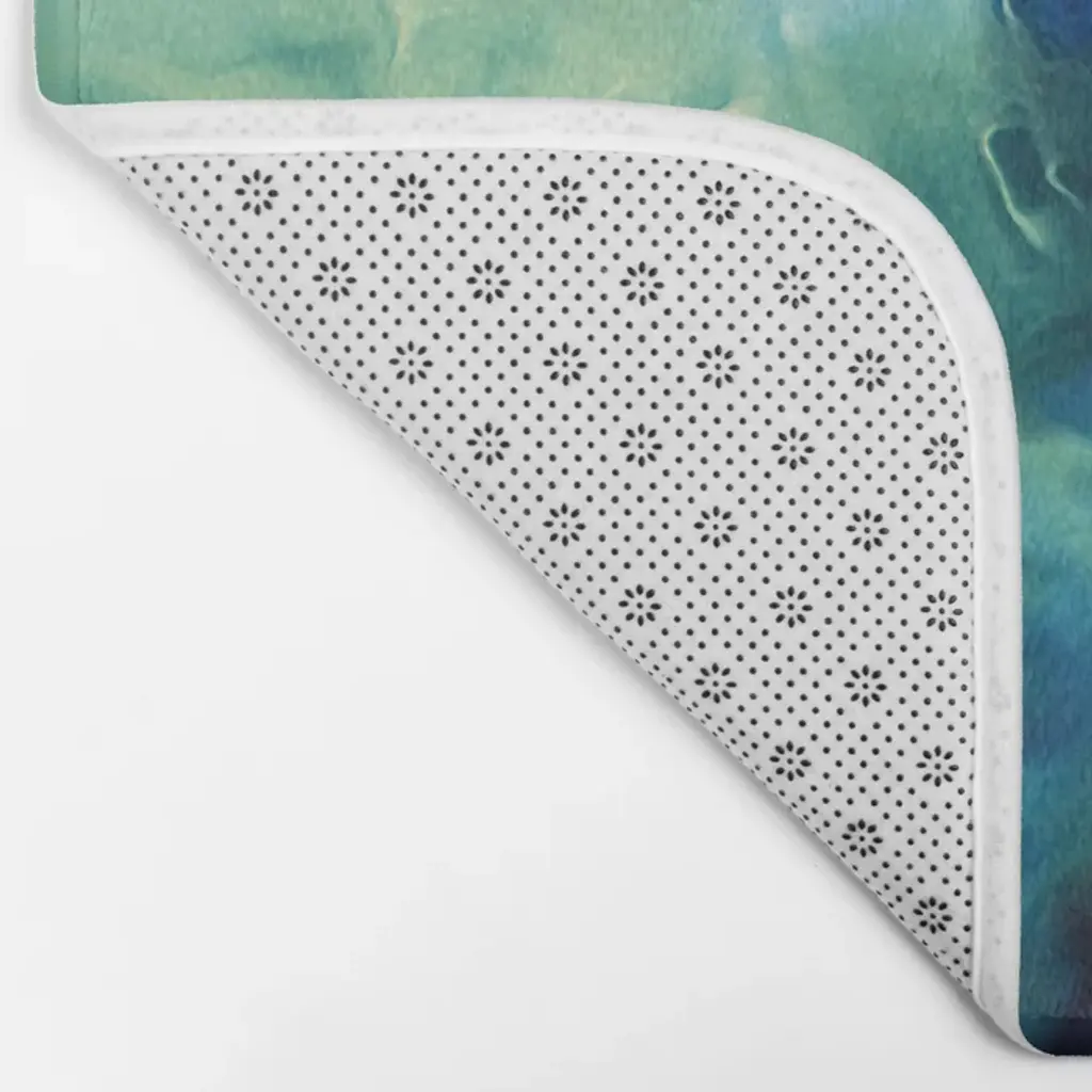 Marbled Ocean Abstract, Navy, Blue, Teal, Green Bath Mat