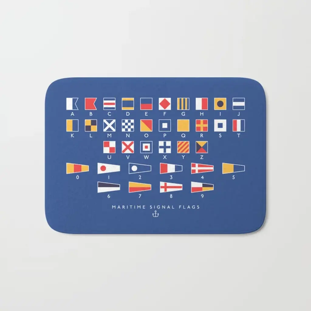 Maritime Nautical Signal Flags Chart - Navy Bath Mat