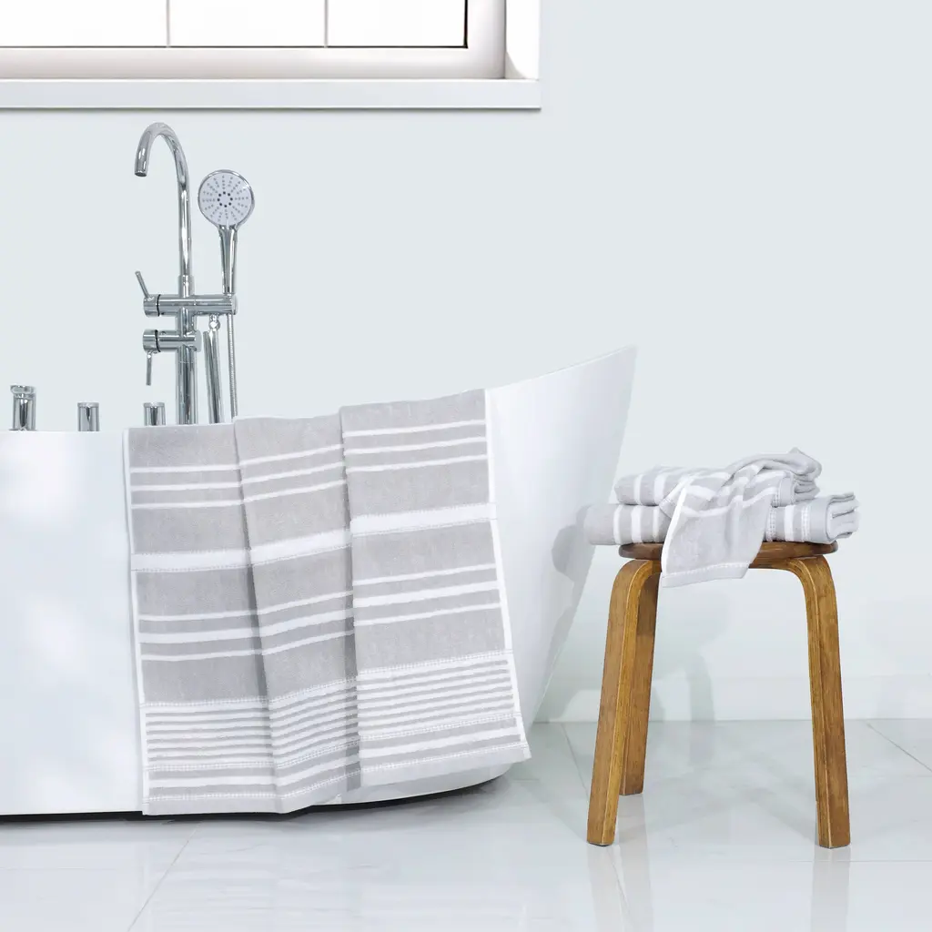 Martex Restore Batten Stripe Bath Towel - Hand - Gray