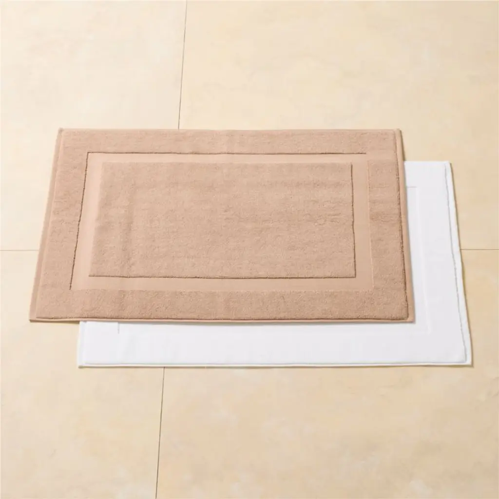 Inspired by classic hotel linens, certified organic cotton bath mat offers unmatched absorbency and softness. A crisp border lends an elegant finish to the impressive 1200-gram weave. Coordinate with the Matin bath towels. CB2 exclusive.