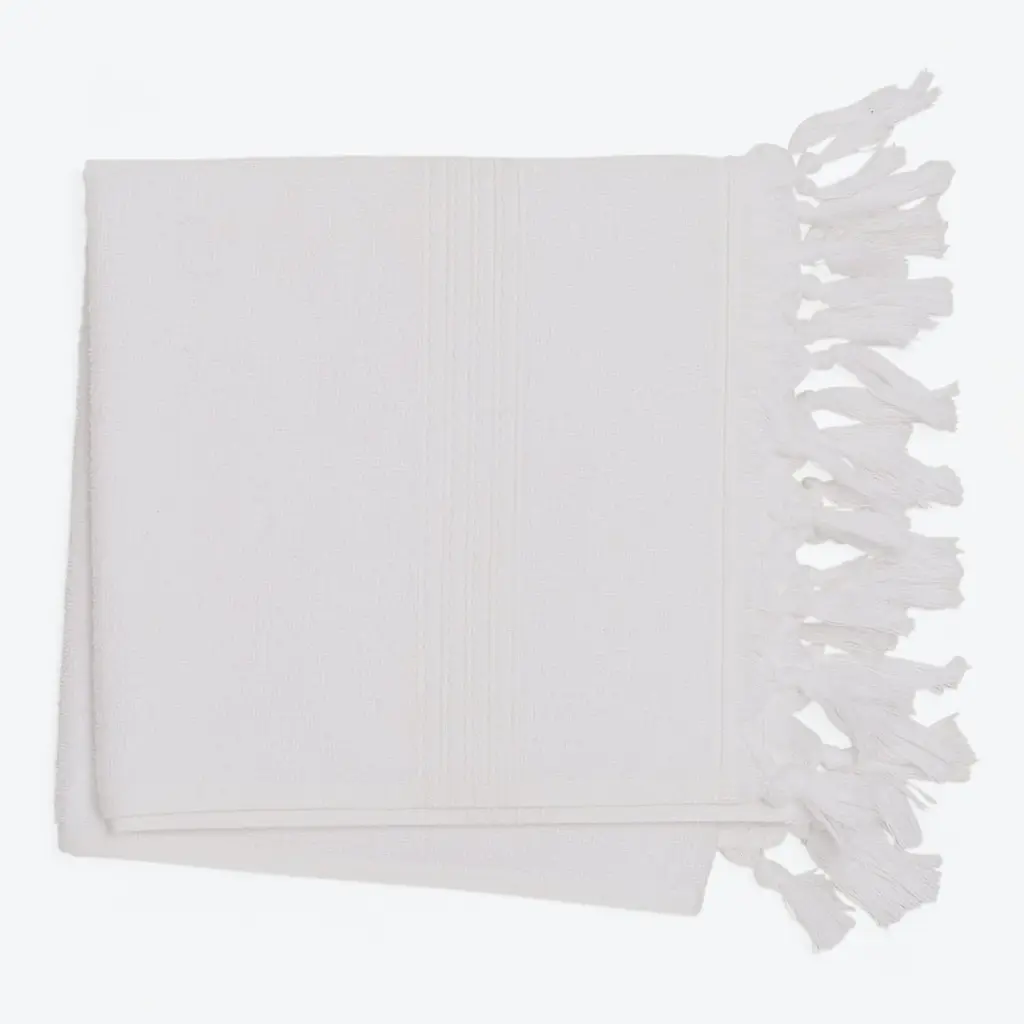 Hand woven, 100% cotton bath towels are airy and light. Microban technology prolongs the life of the fibers while adding antibacterial characteristics. A soft, looped composition absorbs moisture quickly, and slim structures let you easily toss into a small bag. Adorned with handmade tassels and dyed in beautiful hues, each is durable against sun exposure. Pair with a traditional Turkish bathrobe, also made from 100% cotton. Named after Turkish baths, Hamam has been synonymous with bathing rituals and relaxation for centuries. Crafted by textile specialists in the same region that cultivated the art of steaming for spiritual cleansing, these all-natural, organic cotton linens are free from chemicals and are particularly absorbent. Miniscule spaces between fibers create a passageway for air, lending themselves to quick drying. Soft and plush, Hamam bath linens are as pure as the spirit that inspired them.