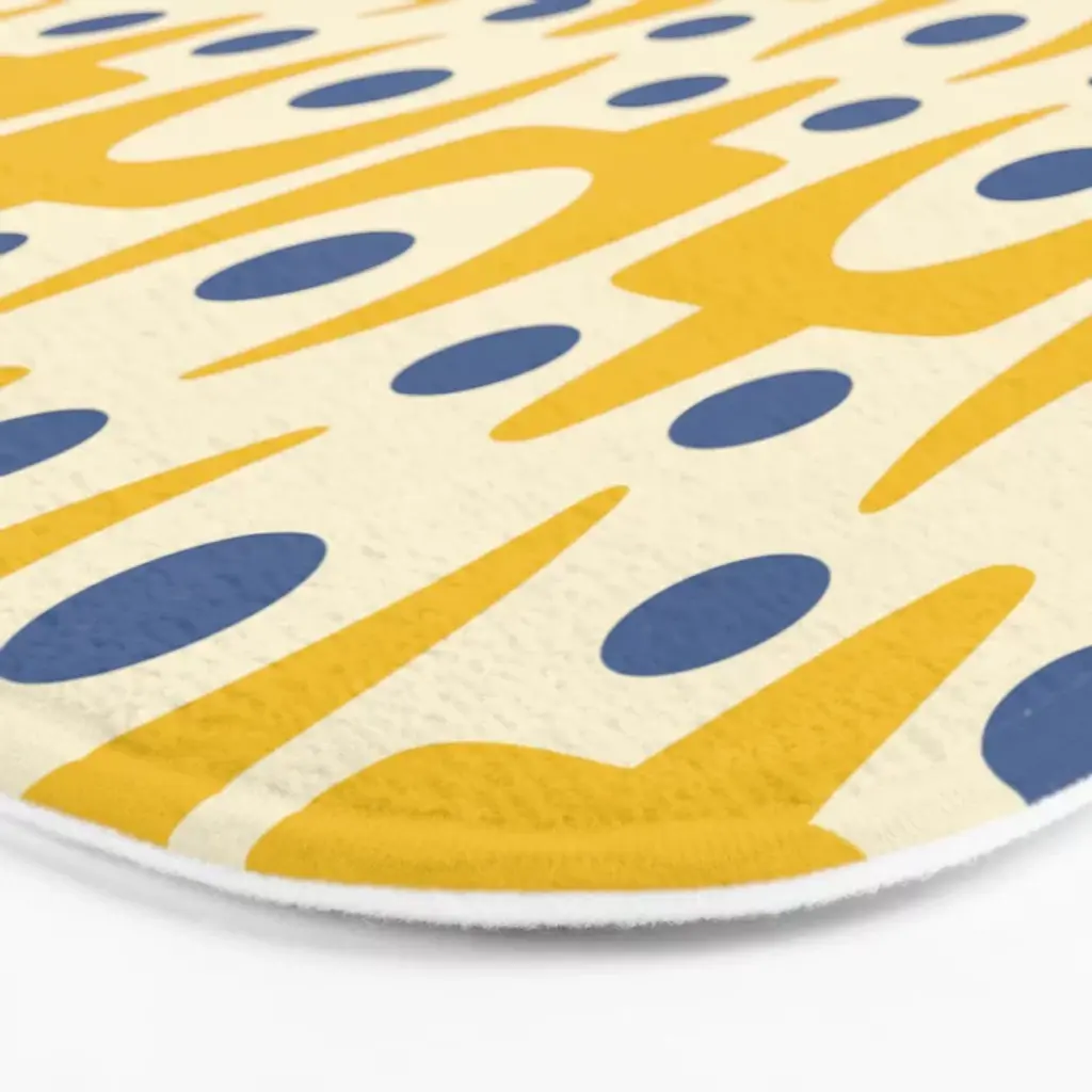 Mid Century Modern Abstract Pattern 641 Googie Yellow And Blue Bath Mat