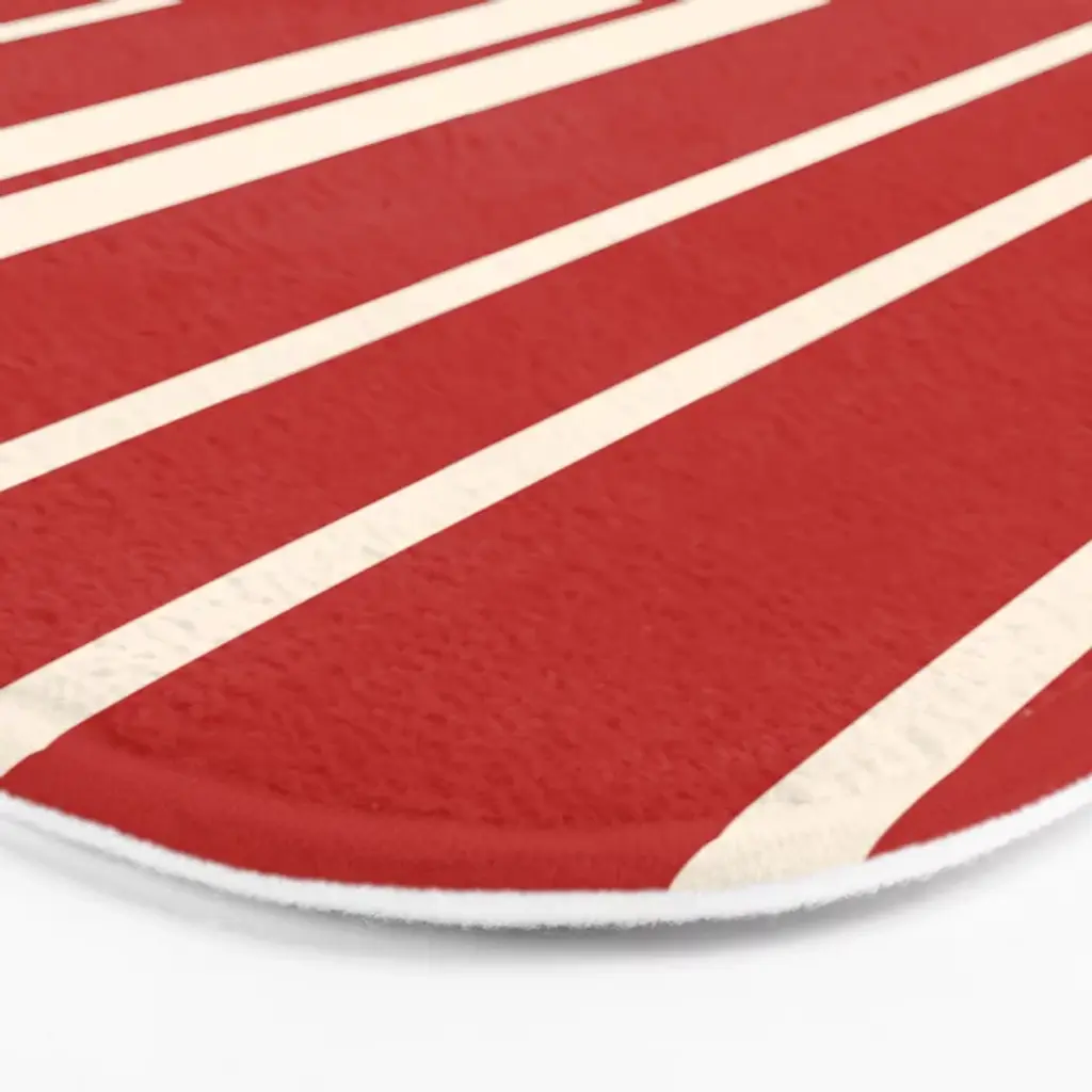 Mid Century Modern Minimalist Geo Chain Geometric Block Stripe Pattern In Red And Cream Bath Mat