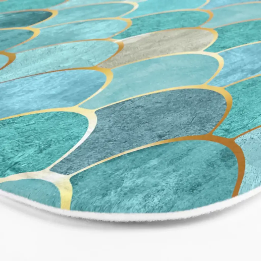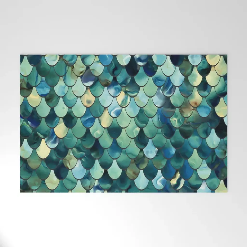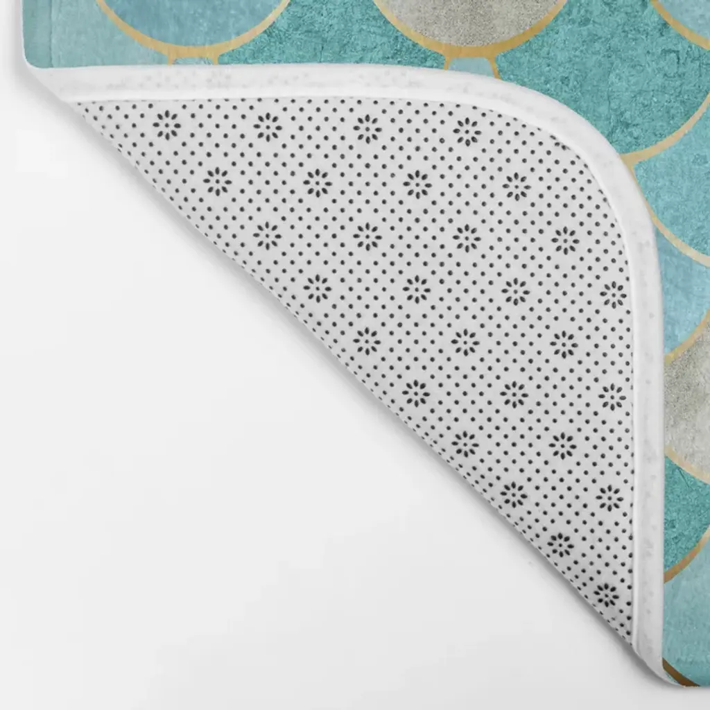 Moroccan Mermaid Fish Scale Pattern, Aqua,teal Bath Mat