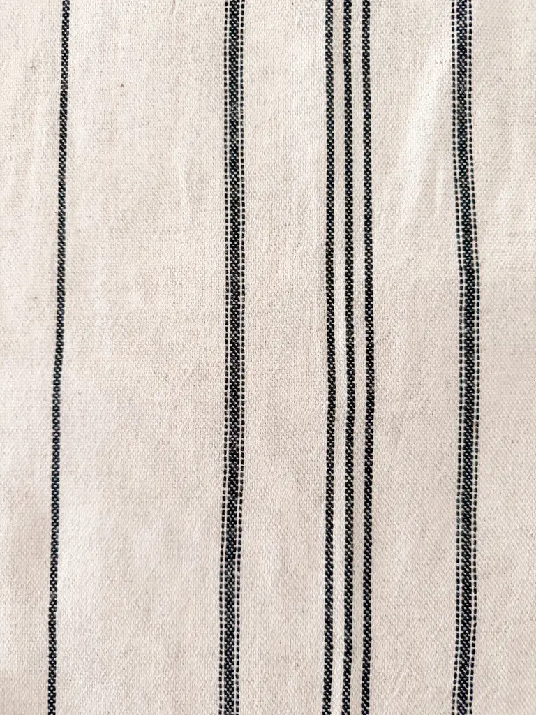 Indulge in the exquisite comfort of our Natural Linen Black Stripe Bath Towel with Knotted Fringe. Its soft and sophisticated design, featuring a natural linen texture, promises a spa-like experience. Crafted from breathable, naturally wicking linen, it offers a luxurious hand feel that's both cozy and elegant. And for added convenience, it's machine washable. 70% Cotton 30% Linen Made in Turkey. Color: Ivory. Color Details: Black Stripes Machine Wash with like colors. Tumble Dry.