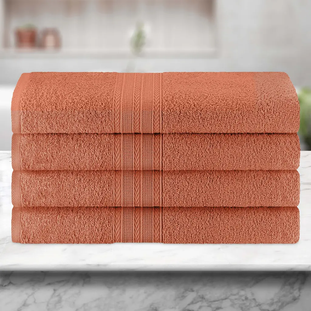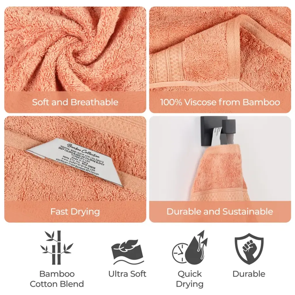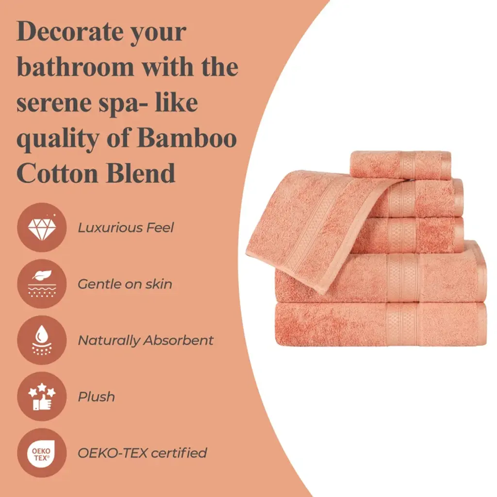 The subtle solid look of the the Indigo Rayon From Bamboo Cotton Blend 4 Piece Bath Towel Set will elevate the style of your bathroom decor. Crafted from a blend of bamboo and cotton for comfort and durability, these silky-soft bamboo bath towels provide a versatile absorption, perfect for the shower, bath, or beach. The pattern is a unique solid color towel with a coordinating border that will match with any Modern, Classic, Traditional, or Contemporary bathroom.