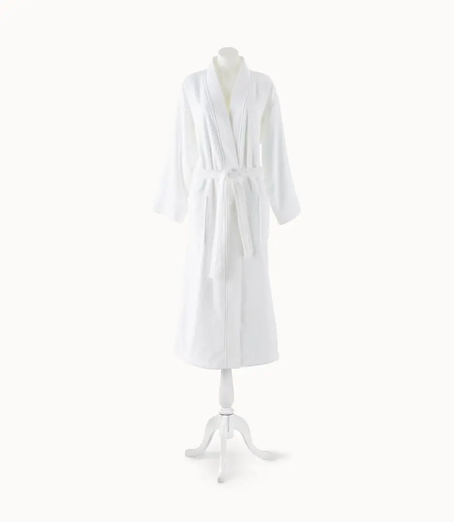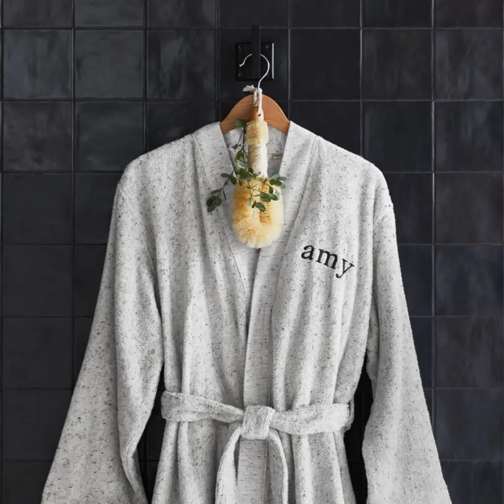 Our exclusive beige bathrobe nestles you in unbelievably plush and incredibly soft organic Turkish cotton. The tonal color and flecked detail come from tiny bits of contrasting color that are twisted into the cotton fiber as it's spun into yarn. Durable, cozy and absorbent, the large/extra largerobe coordinates with our natural beige fleck bath towels.