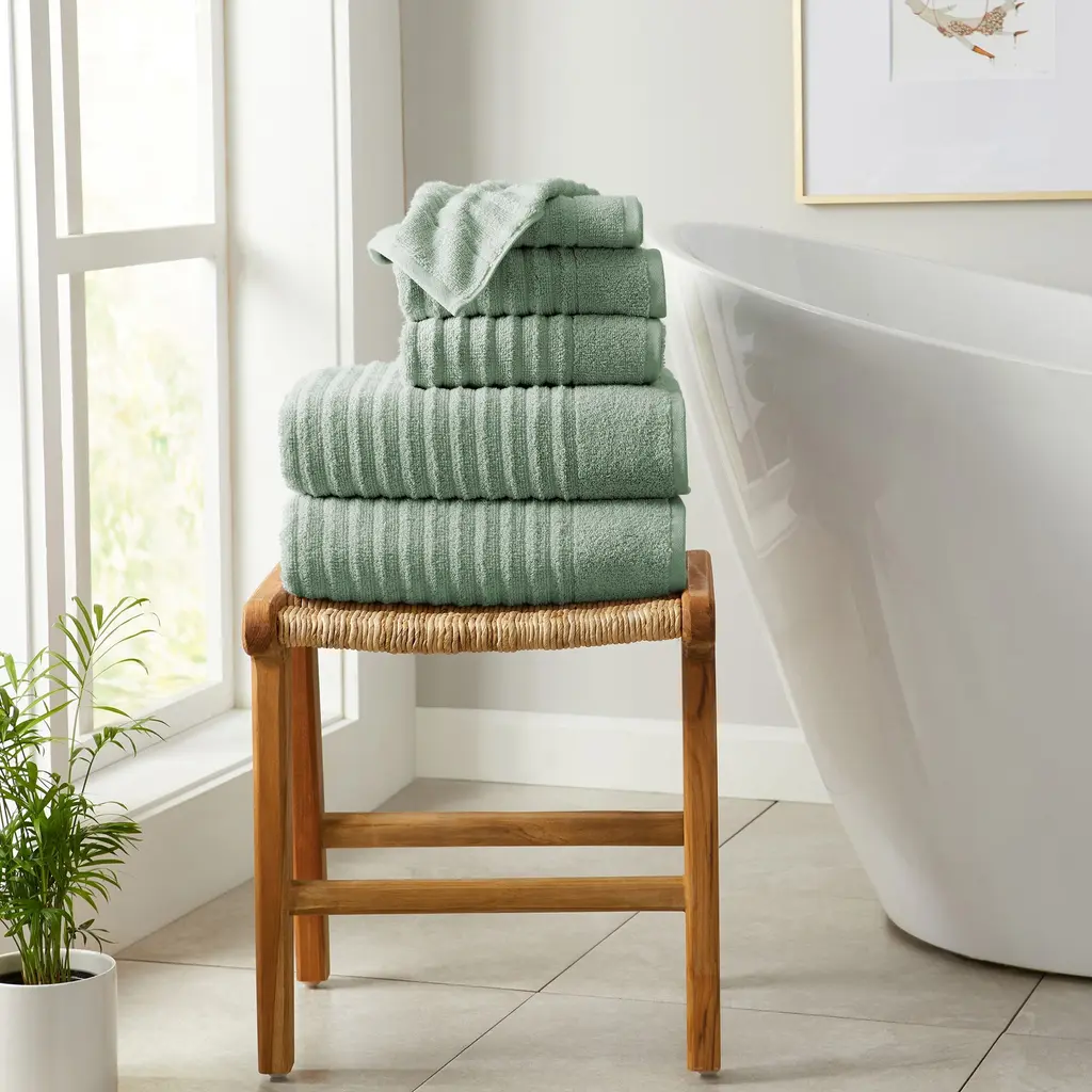 Organic Turkish Cotton Shadow Sage And Pampas Ivory Stripe Bath Towels, Set Of 8