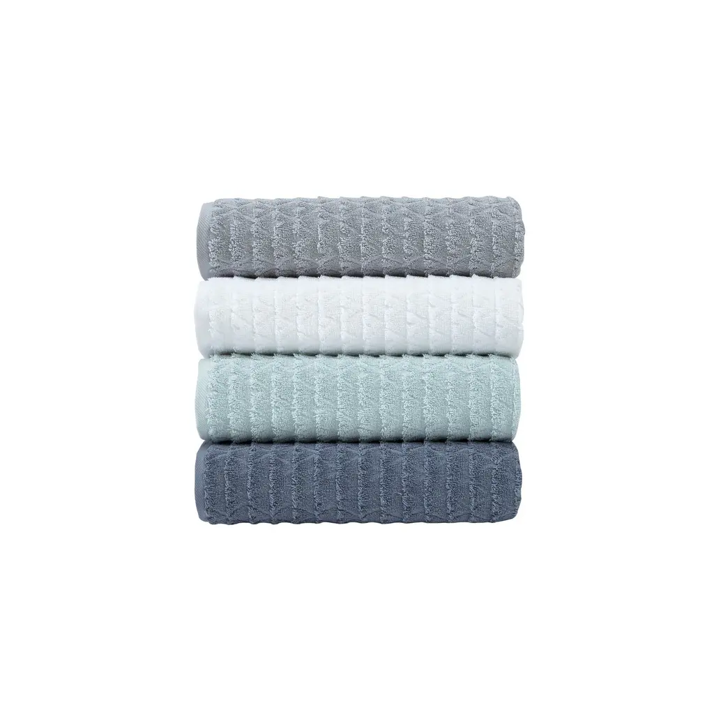 Azure collection is made of finest quality 100% Turkish Cotton for supreme absorbency, durability and softness of touch. With securely stitched edges and decorative triangle jacquard design. Towel collection is produced in state-of-the-art vertically integrated green Factory.