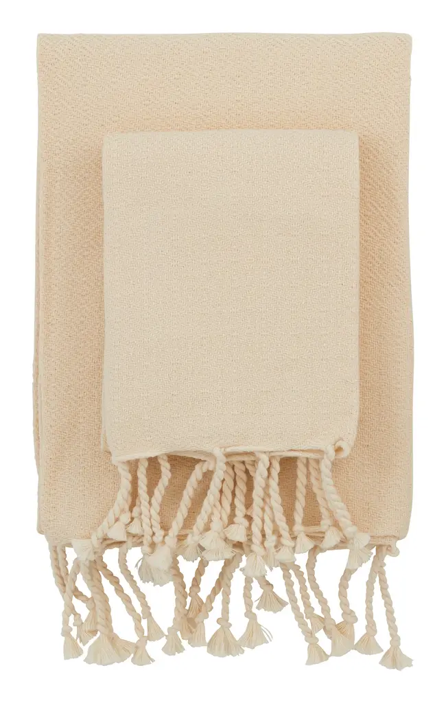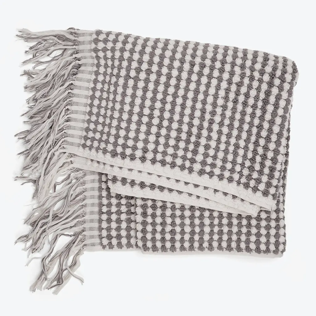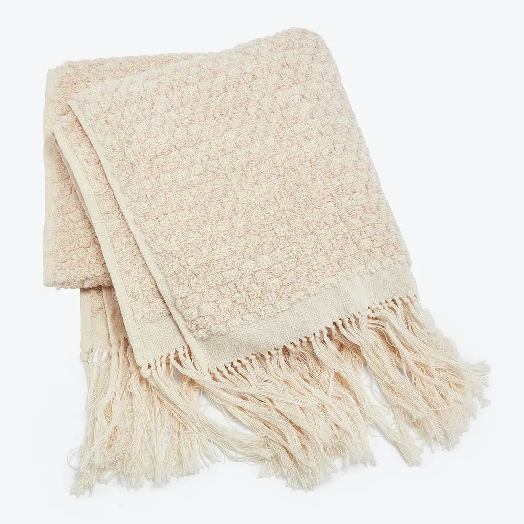 Woven from 100% organic cotton, these plush bath towels are designed for ultimate comfort. The striped pattern with a dotted effect is finished with long, soft tassels. The looped composition absorbs moisture quickly while retaining a palpable airiness. Named after Turkish baths, Hamam has been synonymous with bathing rituals and relaxation for centuries. Crafted by textile specialists in the same region that cultivated the art of steaming for spiritual cleansing, these all-natural, organic cotton linens are free from chemicals and are particularly absorbent. Miniscule spaces between fibers create a passageway for air, lending themselves to quick drying. Soft and plush, Hamam bath linens are as pure as the spirit that inspired them.