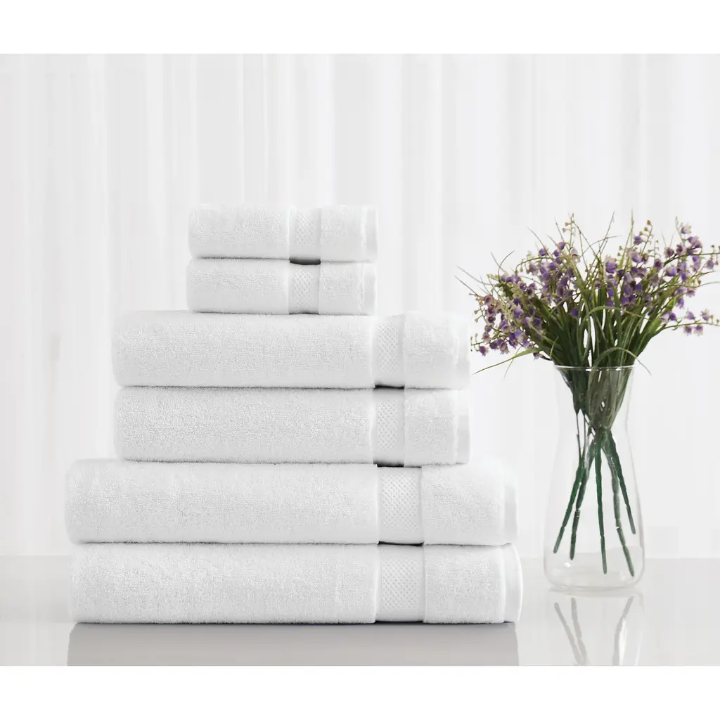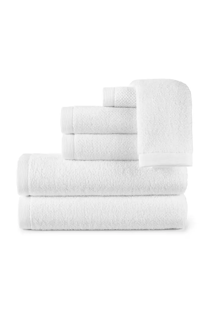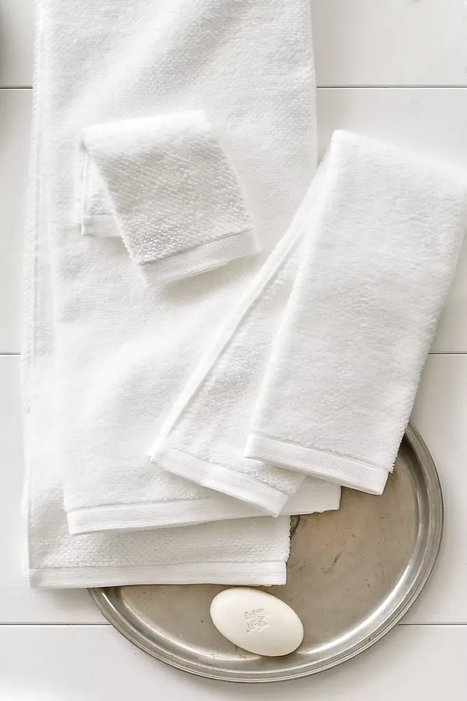 You may be no-nonsense, but you still like refinement. Meet Jubilee, our signature towel that is anything but basic. It's granite weave with ruched striped border is thoroughly modern in its simplicity. Ever-absorbent with a bit of 'scruff' to smooth your skin. 100% long staple cotton 600 gram weight Towel sets includes: 2 Wash Cloths, 2 Hand Towels, 2 Bath Towels Made in Portugal DIMENSIONS Wash - 12" x 12" Hand - 16" x 30" Bath - 30" x 54" Sheet - 35" x 60" CARE INSTRUCTIONS Machine wash cold, gentle cycle. Do not mix colors, do not bleach or use fabric softener. Tumble dry low, remove promptly.