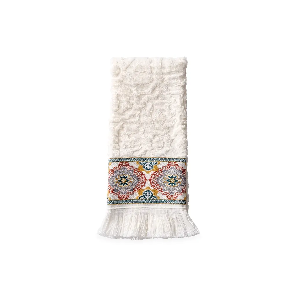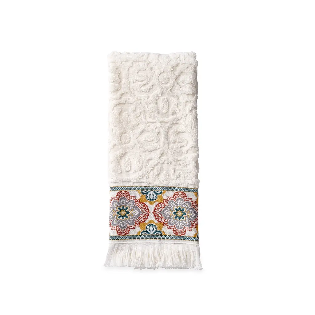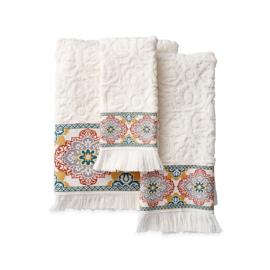 The Noah Medallion bathroom collection is the perfect mix of classic and contemporary but not without the fun. Featuring a series of alternating colors and patterns, you'll fast discover that this statement-making bath towel is the update your bathroom always needed, and the style you always wanted. 100% cotton. Imported. Available in Bath, Hand and Fingertip sizes. Each towel is sold separately.Features:100% cotton Sculpted jacquard with flat satin border Bath 27" x 52" Hand 16" x 28" Fingertip 12" x 18" Each towel is sold separately