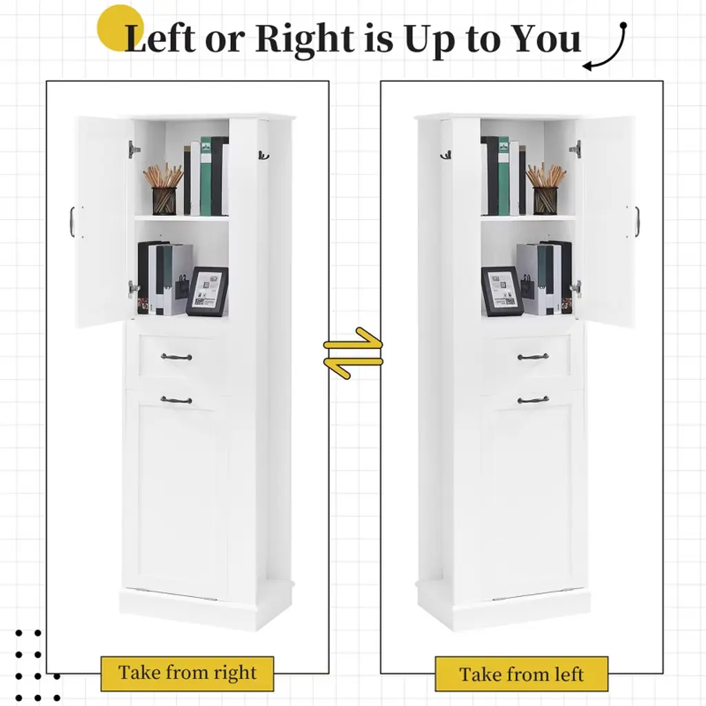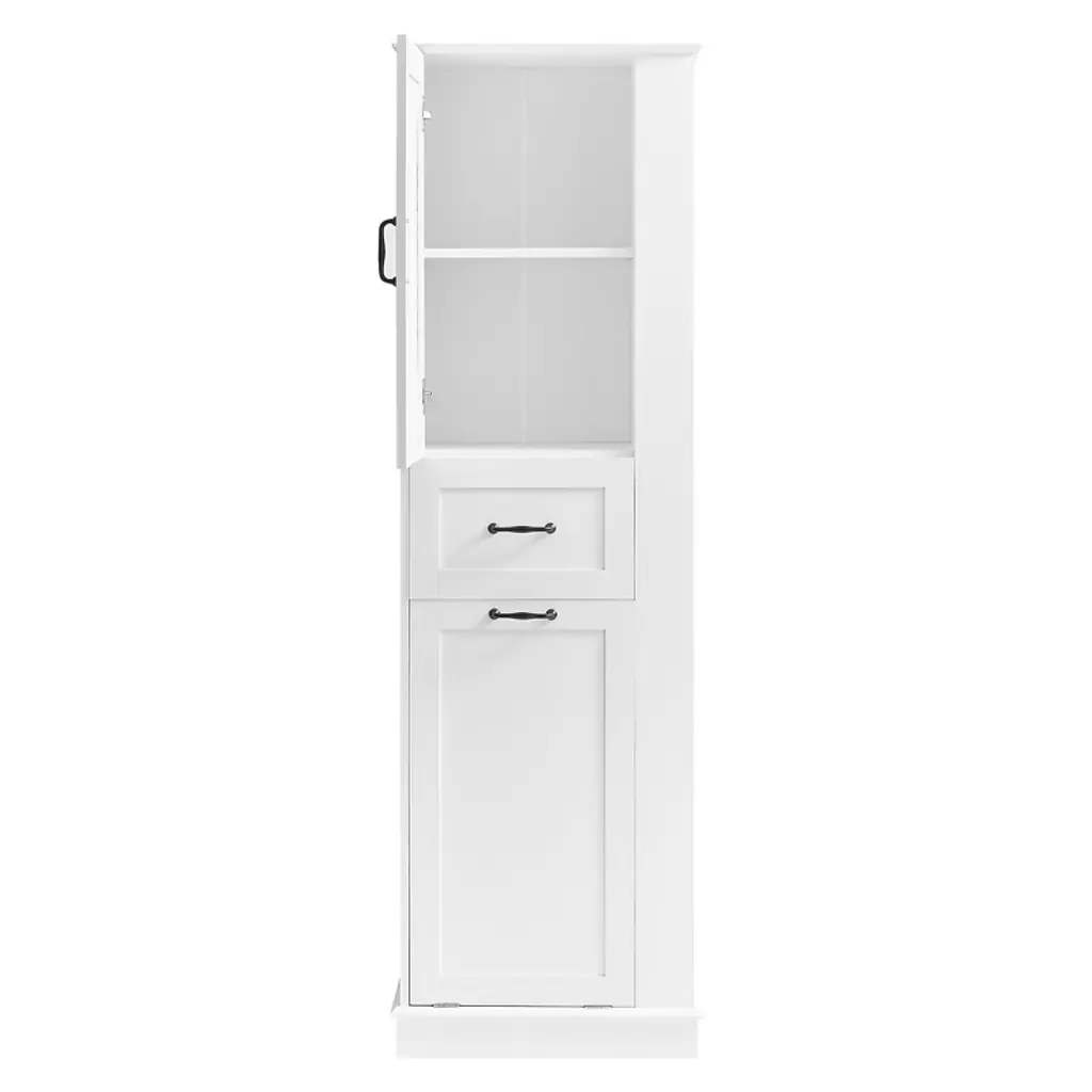 Rbied 63.8 In. H Mdf Freestanding White Linen Cabinet Bathroom Storage Cabinet With Adjustable Shelves And Tilt-out Compartment