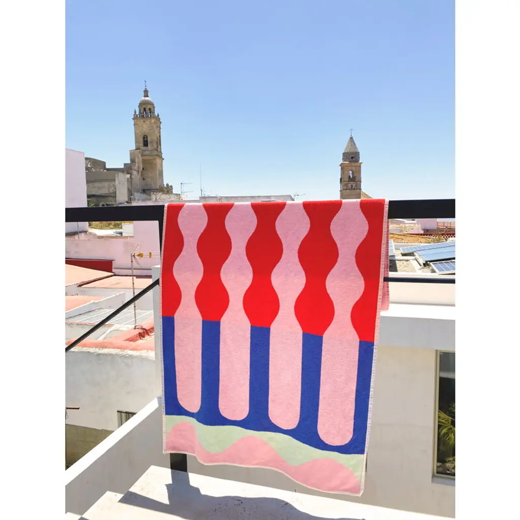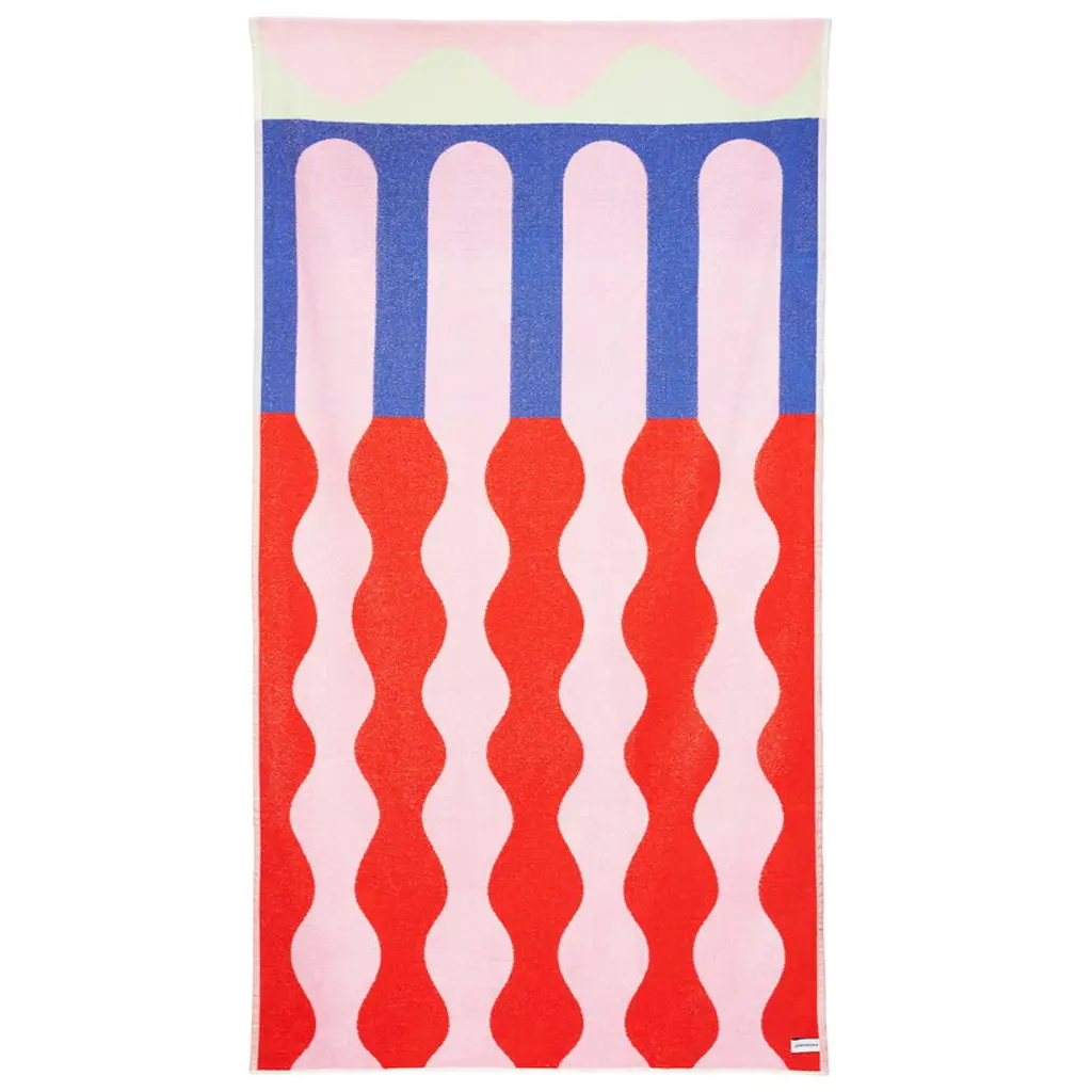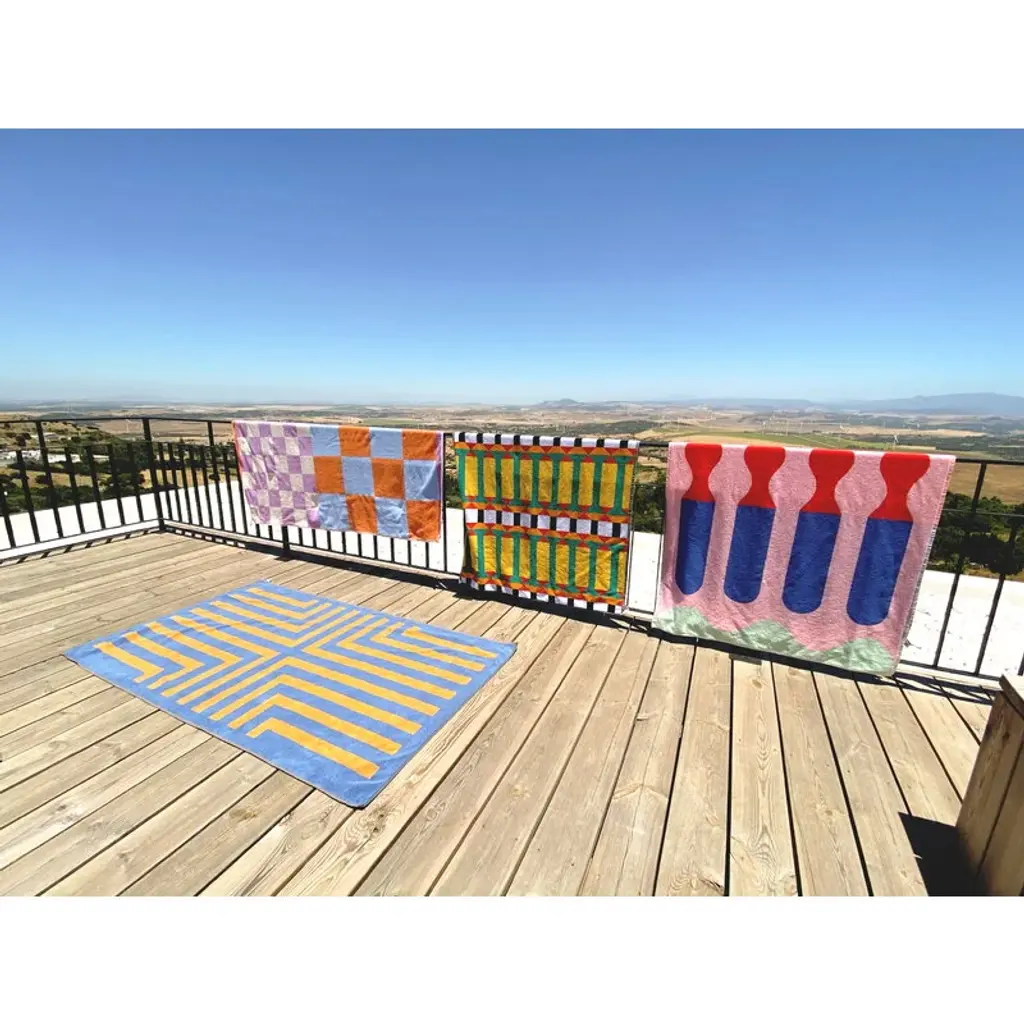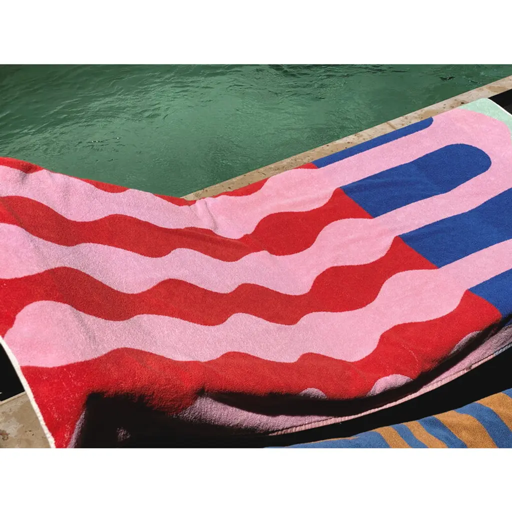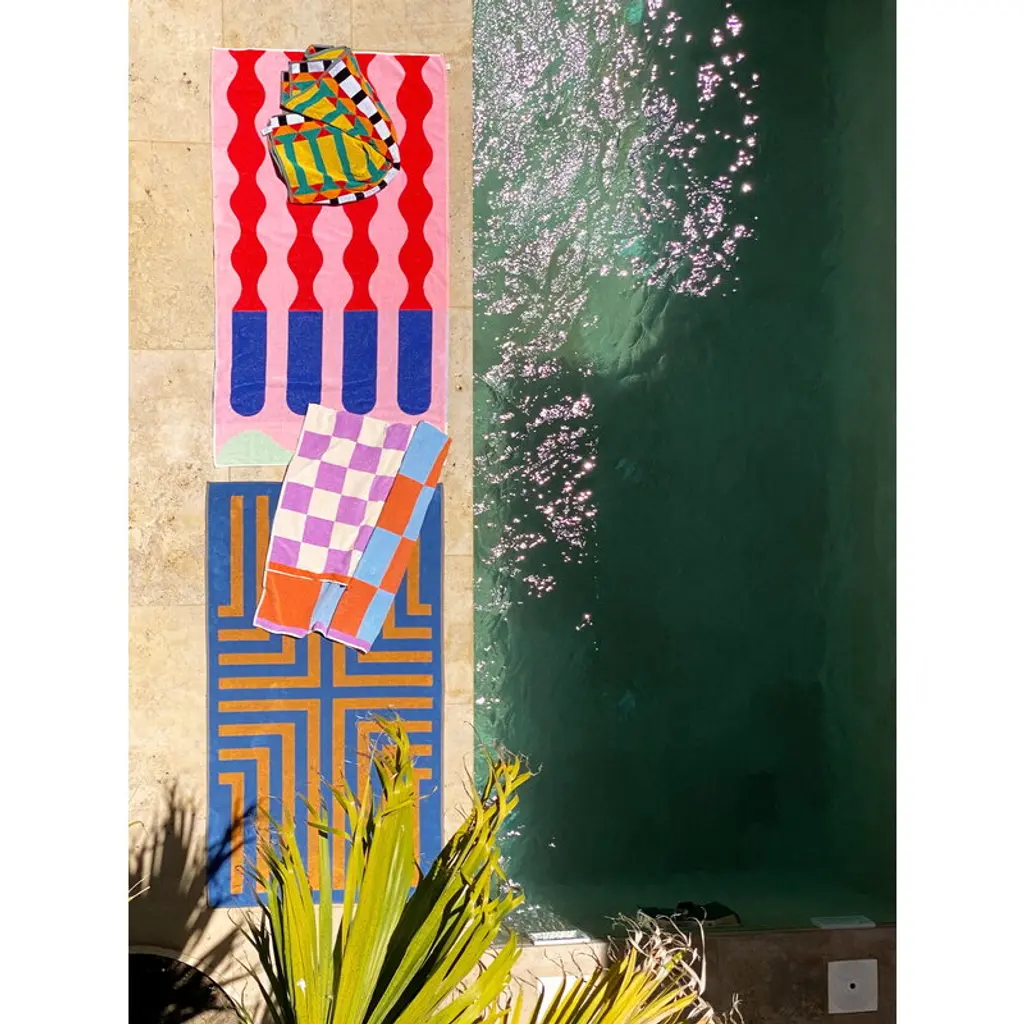ZigZagZurich's Santa Monica XL towel is adorned with vibrant hues and graphic pattern that transports you straight to the carefree summers of peace and love in the 60s and 70s. Designed by Sophie Probst, the bath towel is made from high-quality cotton that feels wonderfully soft against the skin and dries quickly. The luxuriously large towel is not just ideal for your home bathroom, but also as a companion for beach picnics and refreshing summer swims.