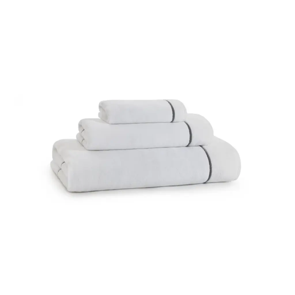 Timeless + fresh. This white bath towel is crafted from combed Turkish cotton in a plush, highly absorbent terry cloth weave. It features a crisp embroidered border and a sewn-in hanging loop for easy storage. Machine wash + tumble dry this effortless everyday essential.