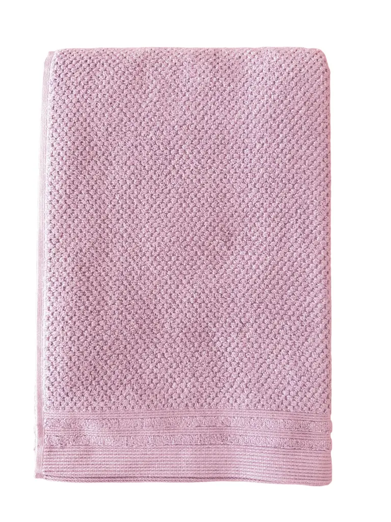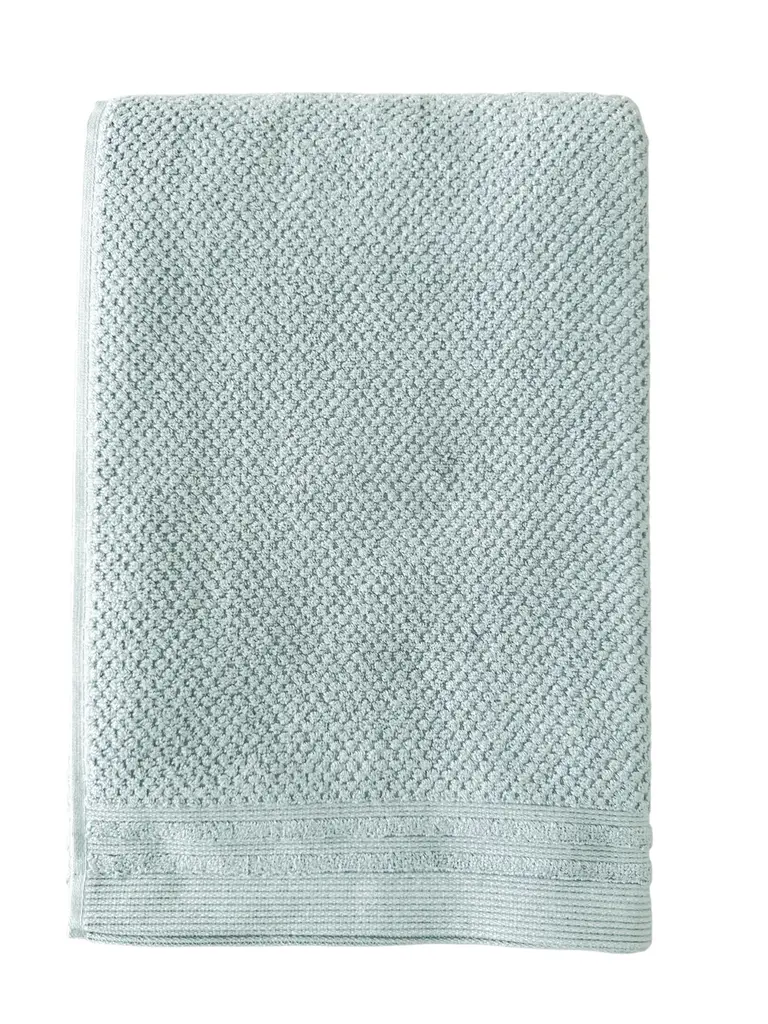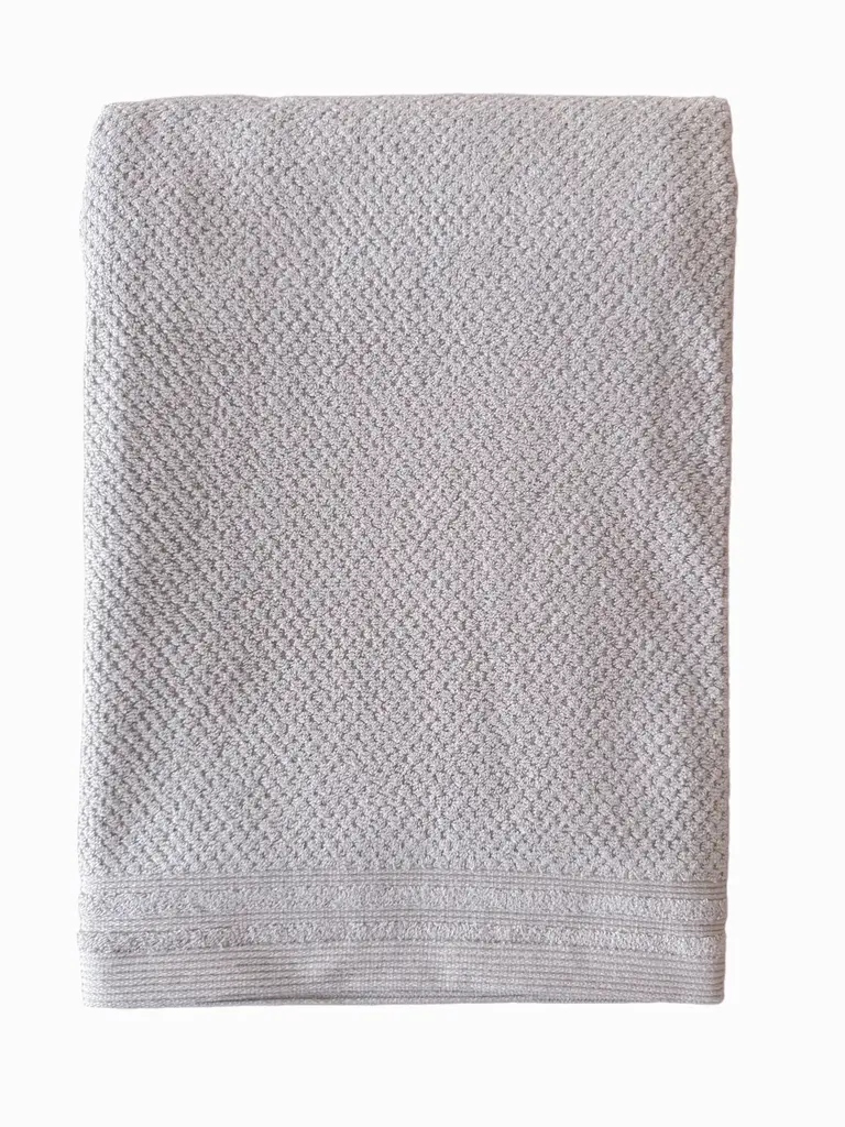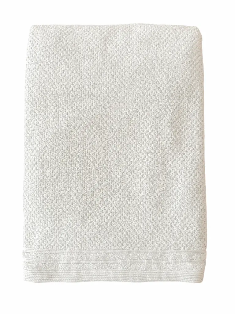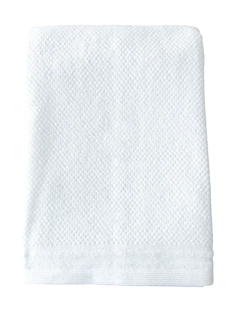 Woven with a lightweight mini square pattern and striped edge, the White Serenity Cotton Bath Sheet not only dries quickly but also boasts durability. 100% Cotton Made in Portugal Machine Wash & Tumble Dry with like colors. Size: Bath Sheet: 40"x70" Bath Towel: 30"x55" Hand Towel Set of 2: 13"x20" Wash Glove Set of 2: 6"x8" Colors: White, Soft Beige, Soft Pink, Soft Grey, Soft Blue, Soft Aqua