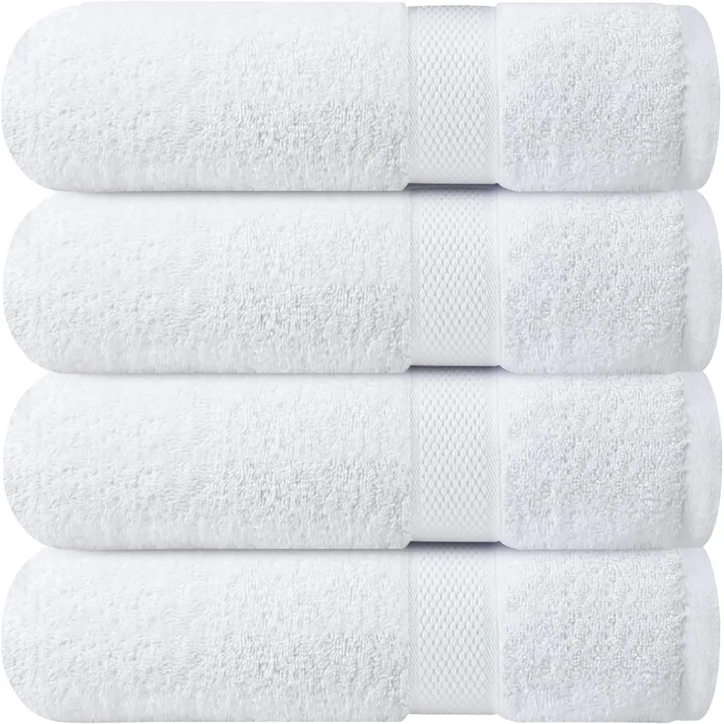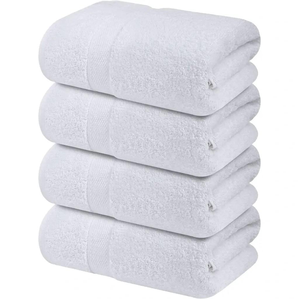 Indulge in the ultimate comfort with our Set of 4 Premium White Bath Towels, each measuring 27x54 inches. Made from 100% soft, high-quality cotton, these towels offer a luxurious feel while ensuring superior absorbency and quick drying. The plush texture is gentle on your skin, making each use a spa-like experience. Perfectly sized for everyday use, they provide ample coverage, and the classic white color adds a fresh, clean look to your bathroom. Durable and soft, these towels maintain their luxurious feel wash after wash, making them an essential addition to your bathroom essentials.