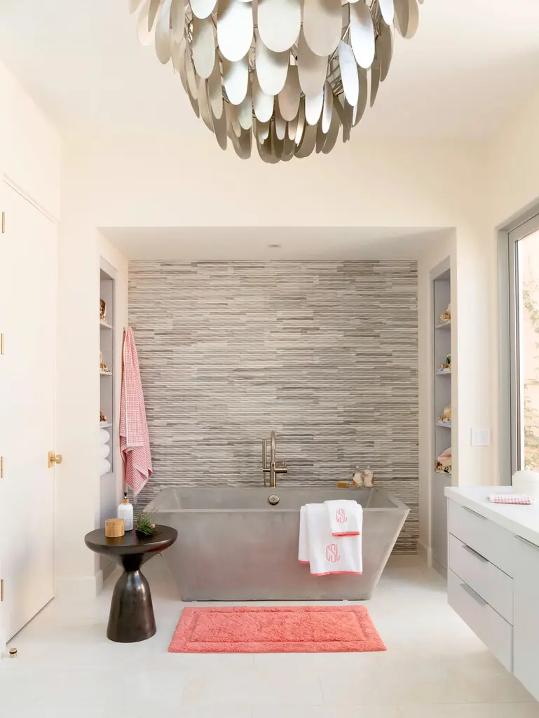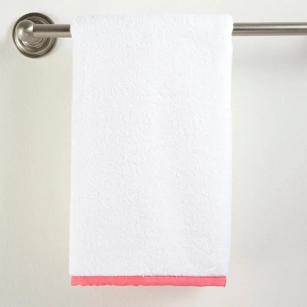 A superabsorbent, luxurious cotton bath towel is punched up with a single band. Made to coordinate with a variety of colors from light neutrals to dark moody greys and every hue in between.