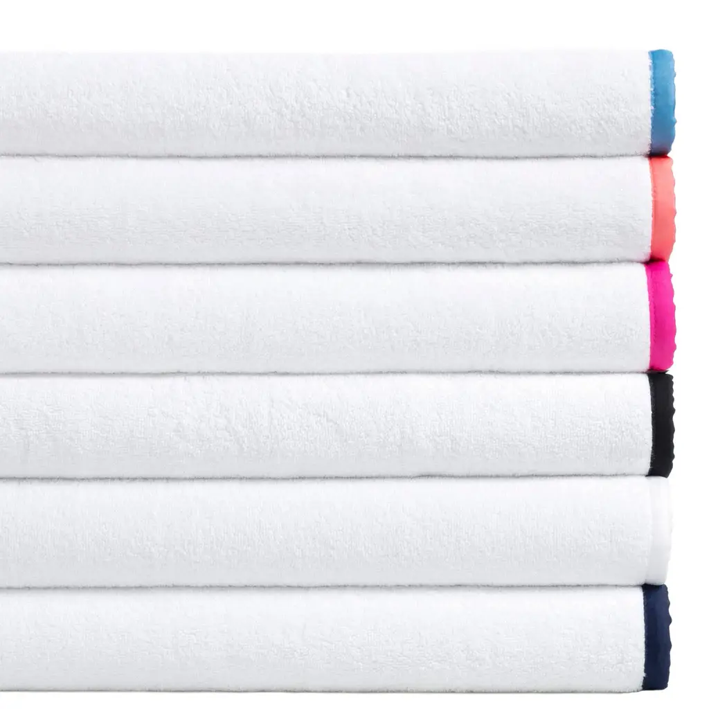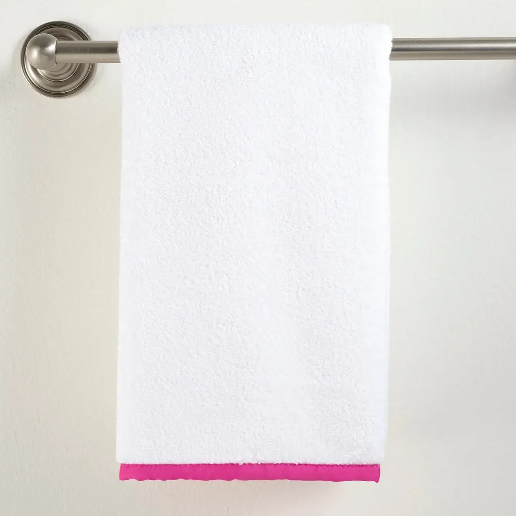 A superabsorbent, luxurious cotton bath towel is punched up with a single band. Made to coordinate with a variety of colors from light neutrals to dark moody greys and every hue in between.
