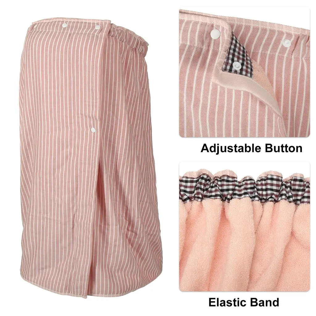 Features:The Bath Towel are made of cotton, soft fabric, delicate to the touch, do not easy to lose lint, have strong water absorption, and can be used with confidence.Designed to provide users with all their basic bathroom drying needs to wrap around their hair or to dry their body.Elastic Band Bath Towel with Adjustable Button, It suitable for many people.With a simple and classic pattern design, it is no longer monotonous. Provide a luxurious bathroom design to enhance your bathing design.Multi-scene use for college dorms, pools, gyms, beaches, locker rooms, bathrooms shower wrap, beach wrap, spa wrap, bath wrap, changing and more.Note:Machine washable towels. Easy to care for and clean. Recommend wash them in cold water before the first use.Please allow 5-10mm differences due to manual measurement. Thank you for being so understanding.Specifictions:Product Name: Bath TowelMaterial: CottonQuantity: 1 PcColor: PinkWidth: 48-67cm / 18.9"-26.4"Length: 70.5cm / 27.8"Package List:1 Pc Bath Towel