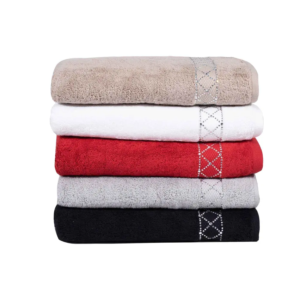 Wrap yourself in luxury with our Atlas Bath Towel from Sparkles Home. This rhinestone-bordered towel brings instant glamor to your bathroom decor, ensuring you feel pampered after every wash.Made from the finest quality cotton terry, this towel is designed to sparkle and shine for a lifetime. Available in a range of vibrant colors and featuring genuine glass rhinestones for maximum sparkle, the Atlas Bath Towel combines both function and beauty.Measuring a generous 54" x 30", this bath towel provides soft absorption and looks fabulous displayed on a towel rack.Machine-washable, this bath towel is easy to keep clean. Simply place it in a garment bag on a delicate wash cycle before laying it out to dry.