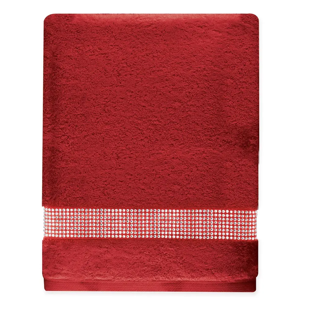 Lounge in style with our Stripe Bath Towel, a luxurious addition to your bathroom decor. This towel is designed for both functionality and aesthetic appeal, ensuring that your bathroom not only feels pampering but looks fabulous too.Made from a plush and durable cotton terry material, this towel is available in a range of vibrant colors to suit all decor and styles. Featuring a band of genuine glass rhinestones, the Stripe Bath Towel is designed to sparkle and shine for a lifetime.Measuring 54" x 30", this bath towel provides soft absorption and brings instant glamor to your bathroom when hung up on a towel rack.Machine-washable, simply put the towel in a garment bag on a delicate wash cycle, then lay out to dry.