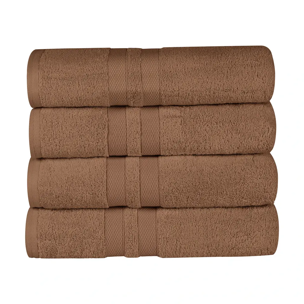 Superior 100% Ultra Soft Cotton Highly Absorbent Medium Weight Solid Bath Towel – Set Of 4 - Chocolate