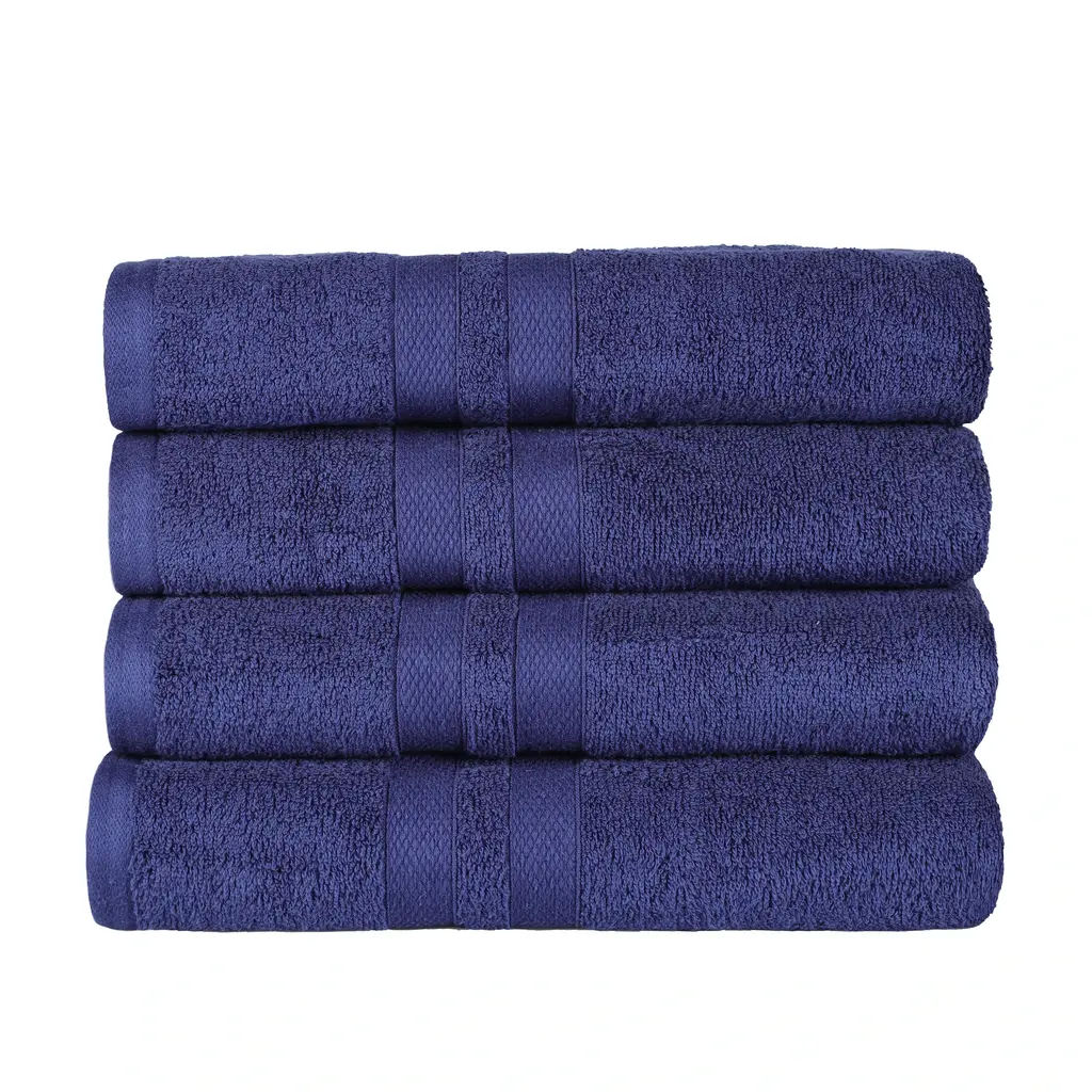 Superior 100% Ultra Soft Cotton Highly Absorbent Medium Weight Solid Bath Towel – Set Of 4 - Navy Blue