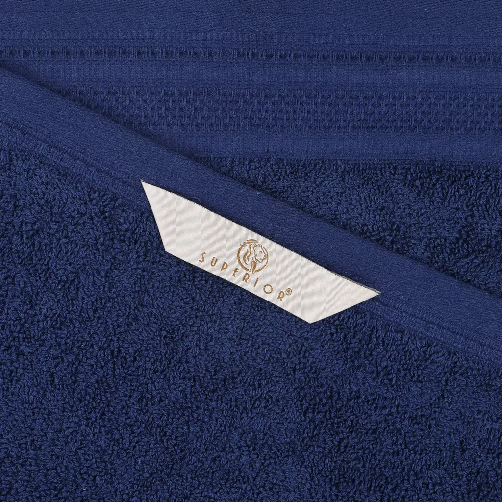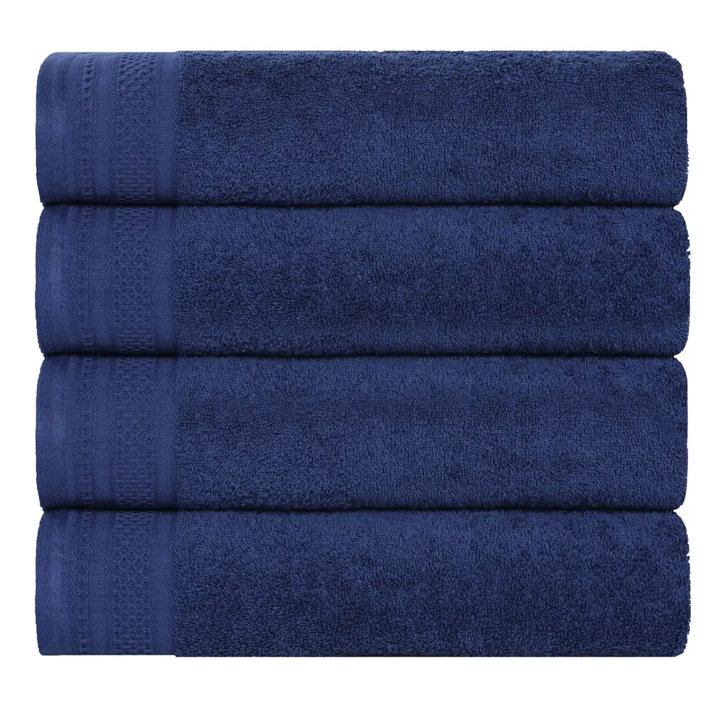 Superior Honeycomb Textured Border Cotton Medium Weight Bath Towels, Set Of 4 - Navy Peony