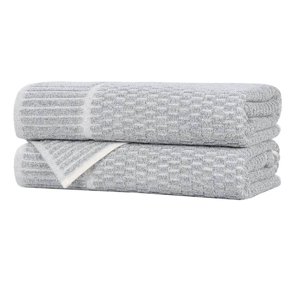 Experience the ultimate in comfort with the Superior Juno Viscose Cotton Blend Bath Towel Set. Crafted from 80% cotton and 20% viscose, these towels offer exceptional softness, absorbency, and a unique aesthetic. The classic stripes combined with a playful checkered border create an eye-catching design that elevates any bathroom. Available in a diverse palette of elegant colors, this set allows you to personalize your space with style. With a soft medium towel weight, these towels are durable and quick drying. Let these towels transform your space into a serene haven of style and functionality.Features: