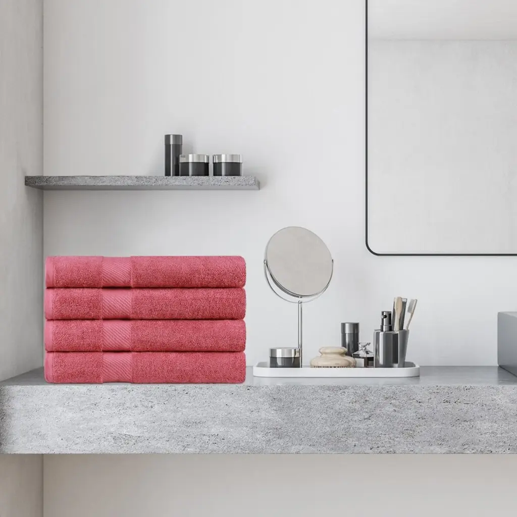 Create a serene, spa-like experience in your bathroom with the Maverick Luxury Solid Highly Absorbent Egyptian Cotton 4 Piece Bath Towel Set by Superior. This ultra-plush towel set will tie together any bathroom decor style including; Modern, Casual, Classic, or Traditional. The solid design with a classic dobby border will seamlessly elevate the mood of your space. The length and strength of premium Egyptian Cotton makes these towels naturally strong and soft. For comfort and durability, each towel provides versatile absorption. These delightful towels are available in a variety of vibrant colors to match your bathroom decor.FEATURES: