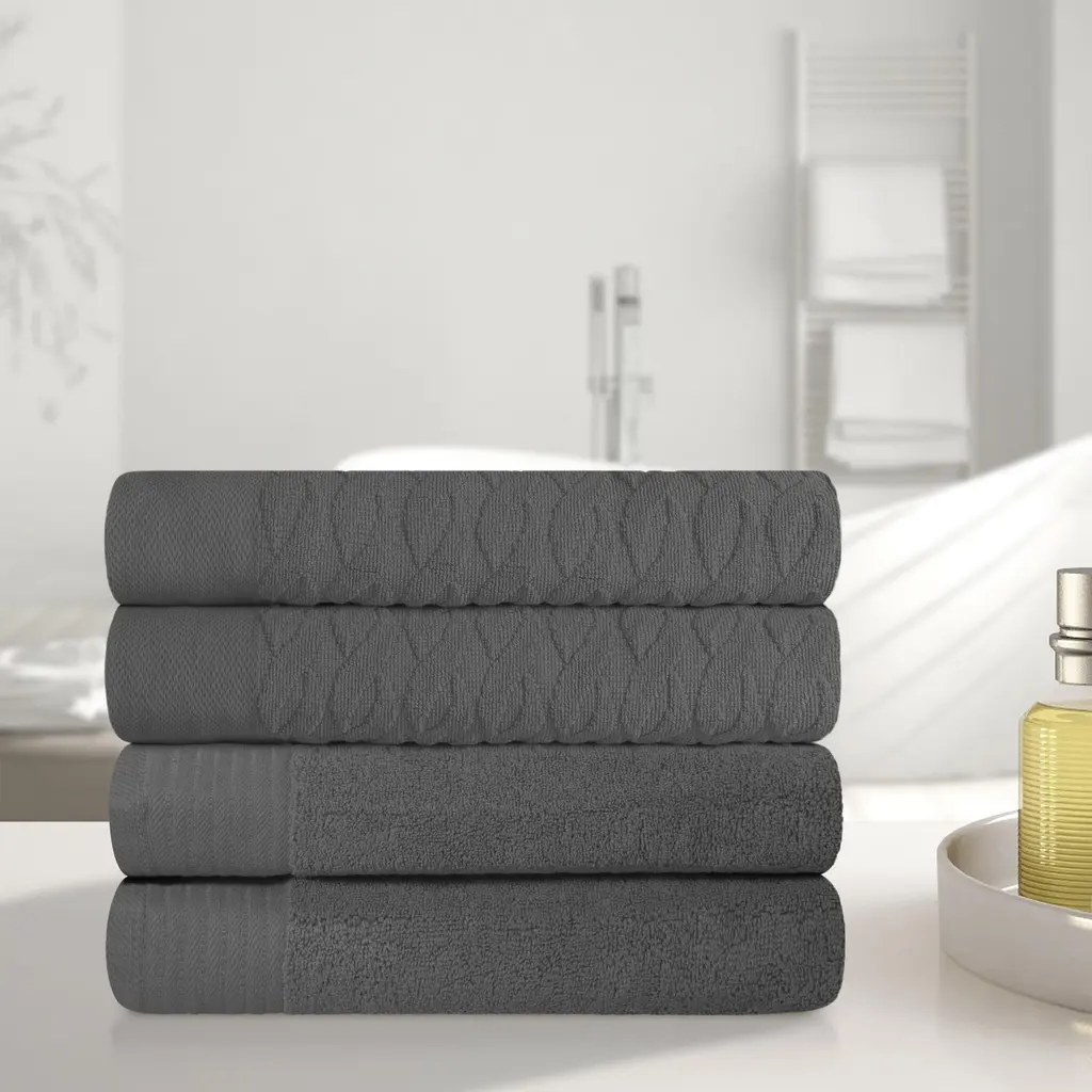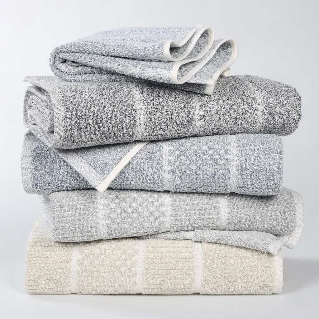 Indulge in everyday luxury with the Superior Naples Viscose Cotton Blend Bath Towel Set. Crafted from 80% cotton and 20% viscose, these towels provide exceptional softness and absorbency while showcasing a unique aesthetic. The alternating checkered and ribbed design adds an eye-catching element that elevates any bathroom. Available in a diverse palette of elegant colors, this set allows you to personalize your space with style. With a soft medium towel weight, these towels are durable and quick drying. Let them transform your bathroom into a serene haven of style and functionality. Features: