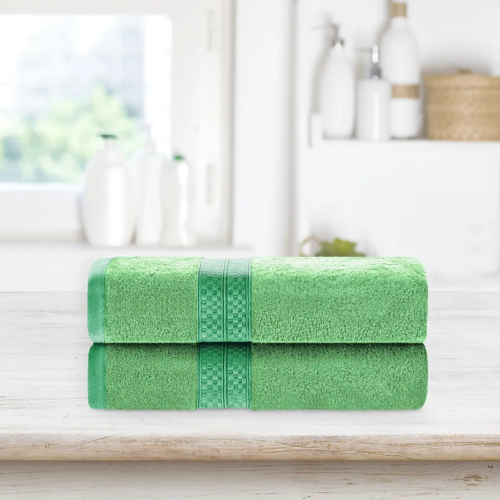 Superior Venice Zero Twist Cotton Medium Weight Absorbent Bath Towels, Set Of 2 - Green