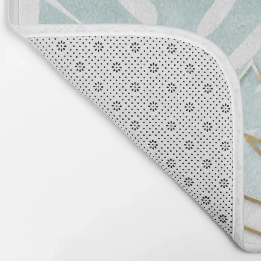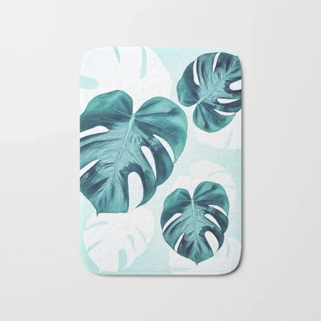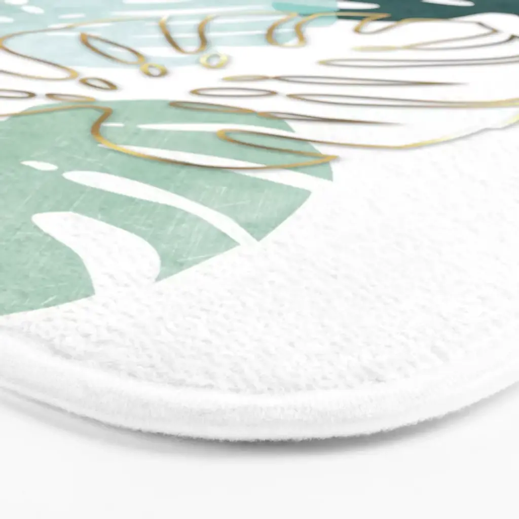 Tropical Minimal / Green, Turquoise And Gold Monstera Bath Mat