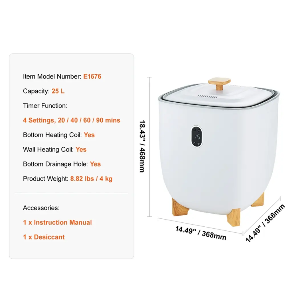 Vevor Towel Warmer 25l, Towel Warmer Bucket With 2 Heating Modes, 20/40/60/90 Min Auto Shut Off, Bottom Heating Columns, Large Towel Warmer
