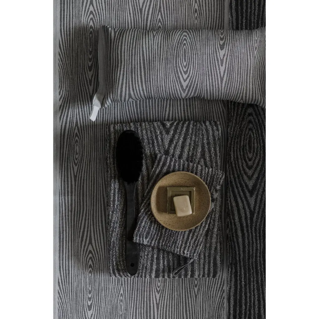 The Viilu bath towel by Lapuan Kankurit is adorned with Marja Rautiainen’s pattern depicting wood veneer – Viilu is Finnish for veneer. Made of a blend of European linen and cotton, the absorbent terrycloth towel rubs the skin in a nice and gentle way. The Viilu bath towel has been woven in Finland at the own weaving mill of Lapuan Kankurit.
