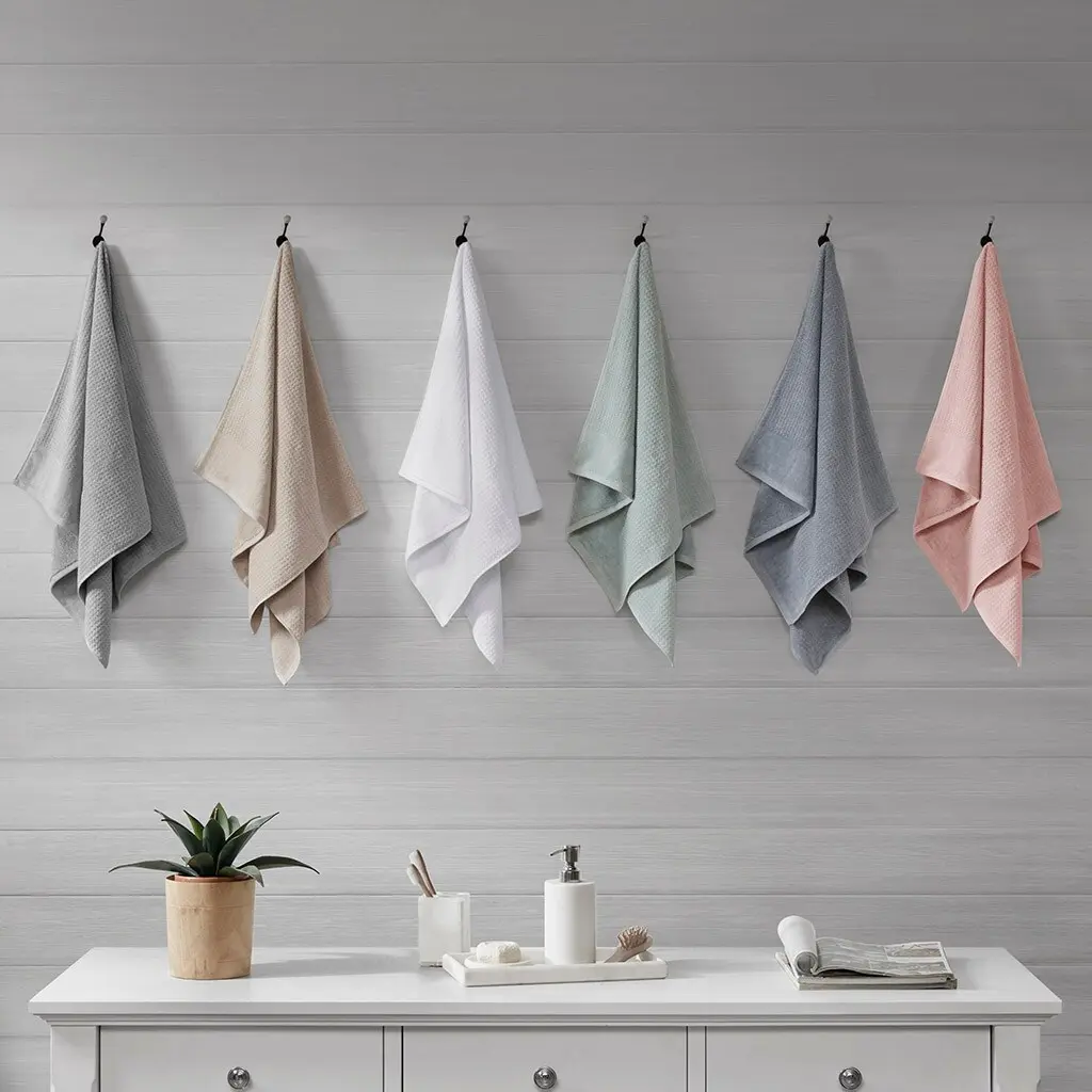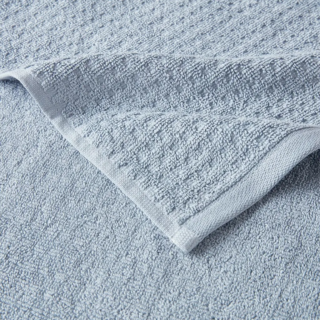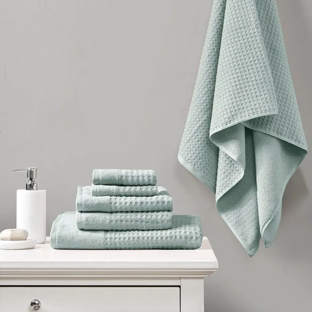 Waffle Jacquard Design Antimicrobial Cotton Bath Towel 6 Piece Set,machine Washable,antibacterial Process Towel - Blue