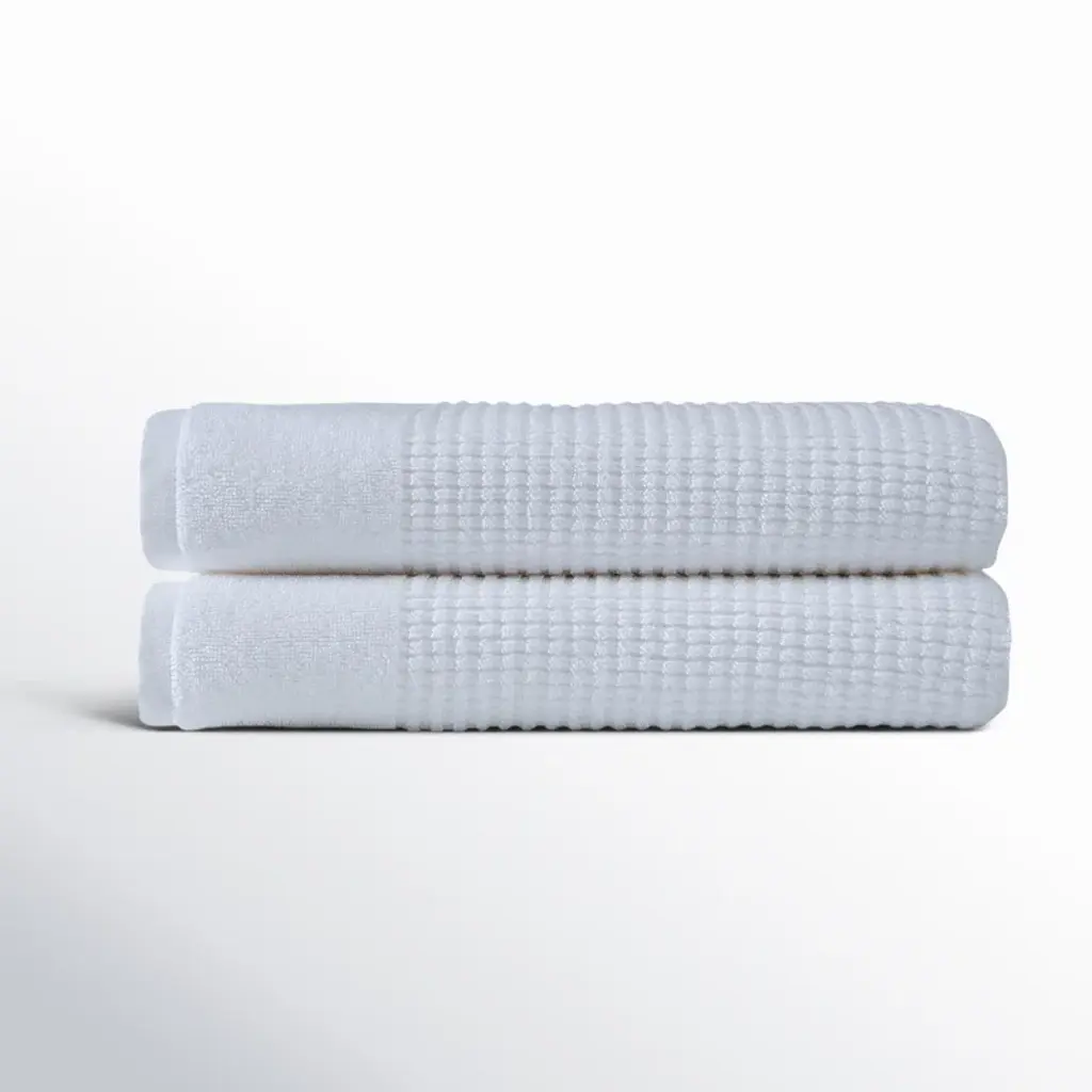 Waffle Terry 2 Pcs Turkish Bath Towels Set - White